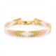 Cute bracelet made from plated Miyuki beads and delicate hot pink cords with a slight shine.