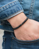 Elastic bracelet for men, handmade with black and gray glass beads, 4mm. Minimalist design for casual outfits.