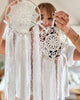 This creation is fully handcrafted with selected materials: laces, feathers, wool, crochet, yarn, ribbons and wool pompons. The mandala may vary from the model in the photo, because each piece of Muak is unique and therefore different.