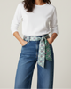 The Mini Agadir Mint scarf is crafted from 100% silk, featuring exclusive hand-drawn designs created in France and expertly hand-printed in India.