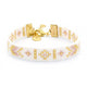 Niedliches Armband aus plattierten Miyuki-Perlen in der Mitte und zarten hellblauen Kordeln.