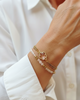 Süßes und dünnes Armband aus kleinen Perlen, kombiniert mit anderen vergoldeten Perlen und zarter Kordel. Es passt bequem an Ihr Handgelenk.