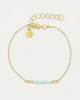 Niedliches Armband aus plattierten Miyuki-Perlen in der Mitte und zarten hellblauen Kordeln.