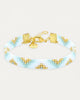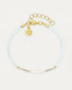 Niedliches Armband aus plattierten Miyuki-Perlen (Hellblau, Silber und Weiß) und zarten weißen Kordeln mit leichtem Glanz.