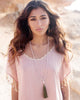 Halskette aus Baumwollkordel und Münzen aus Edelstahl.