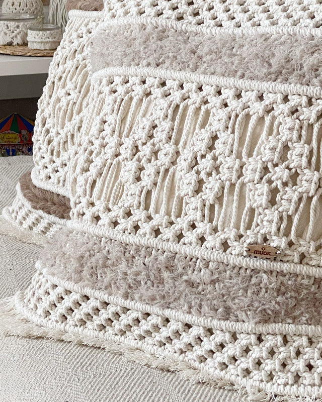 Materials: Natural 100% cotton rope 3 mm and wool. Please choose the wool color you prefer - Beige, White, Pastel Pink.
