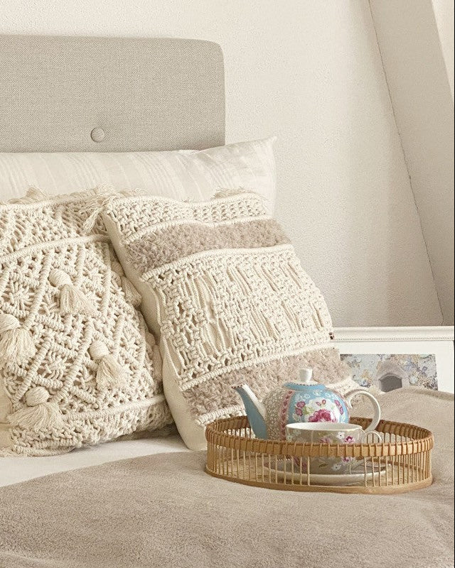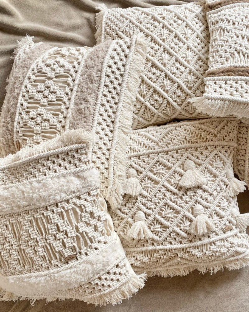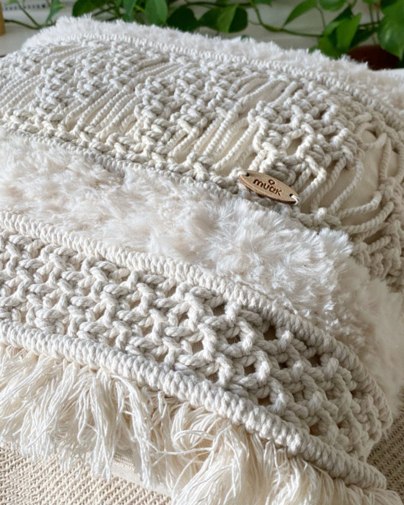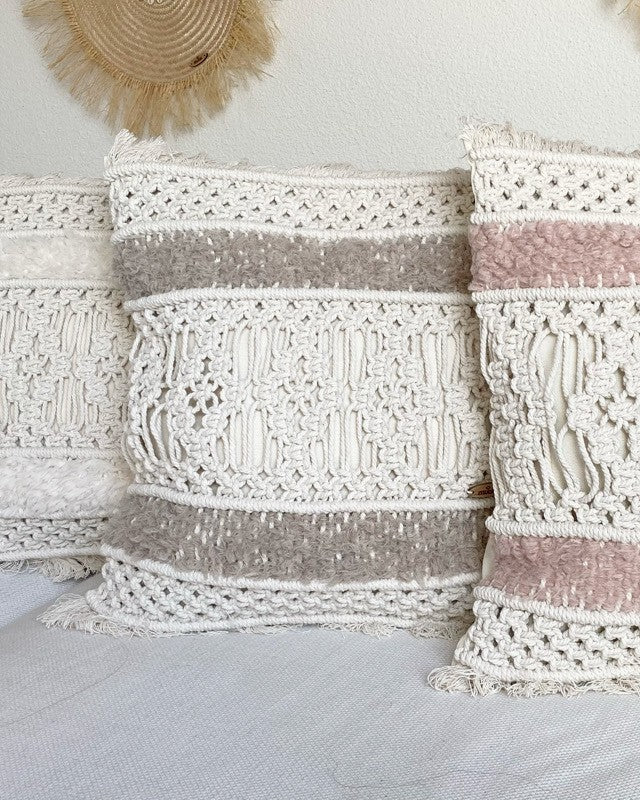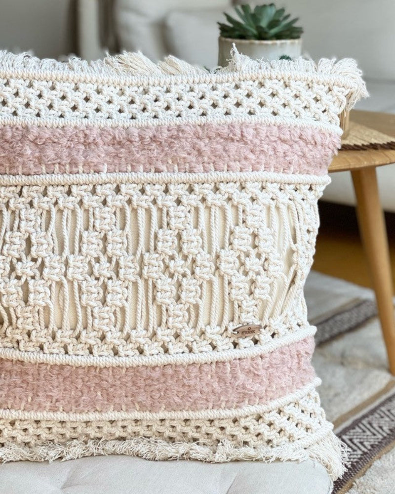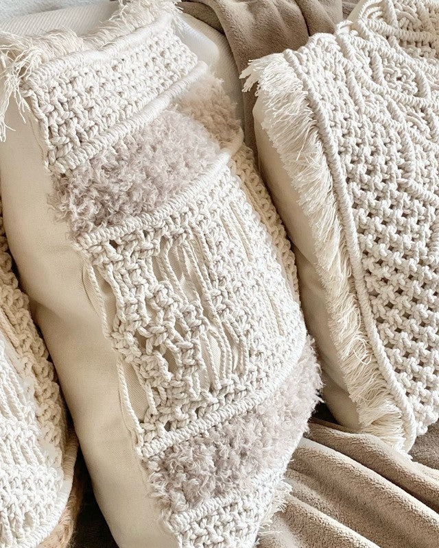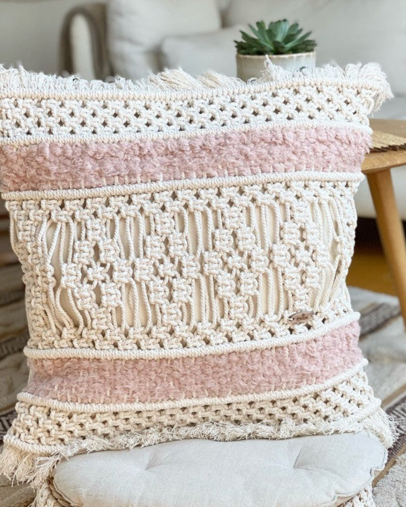 Handmade boho macrame throw pillow case. The pillow case is made of 100% cotton rope.