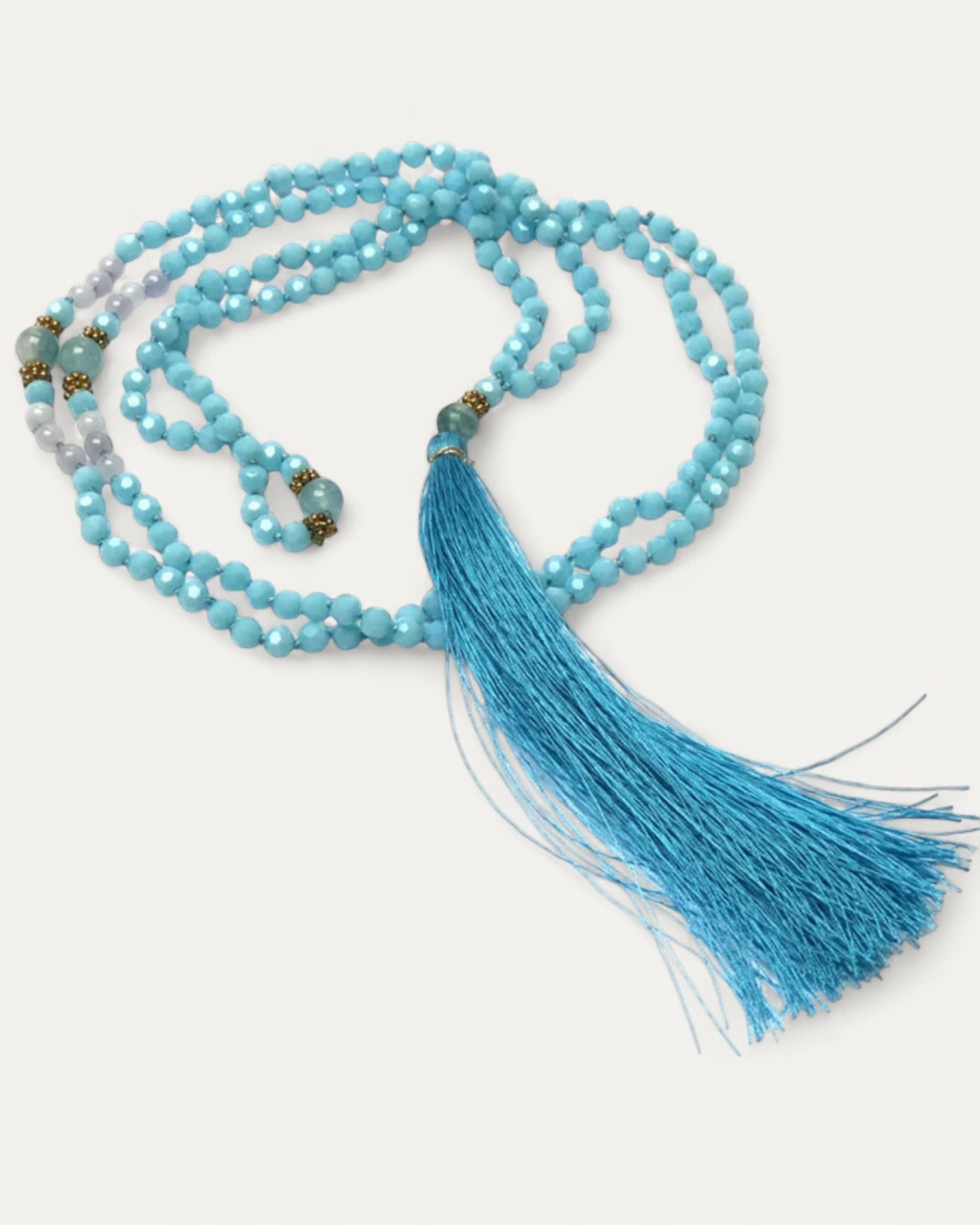 Necklace crafted in a cotton cord, crystal and stone beads.