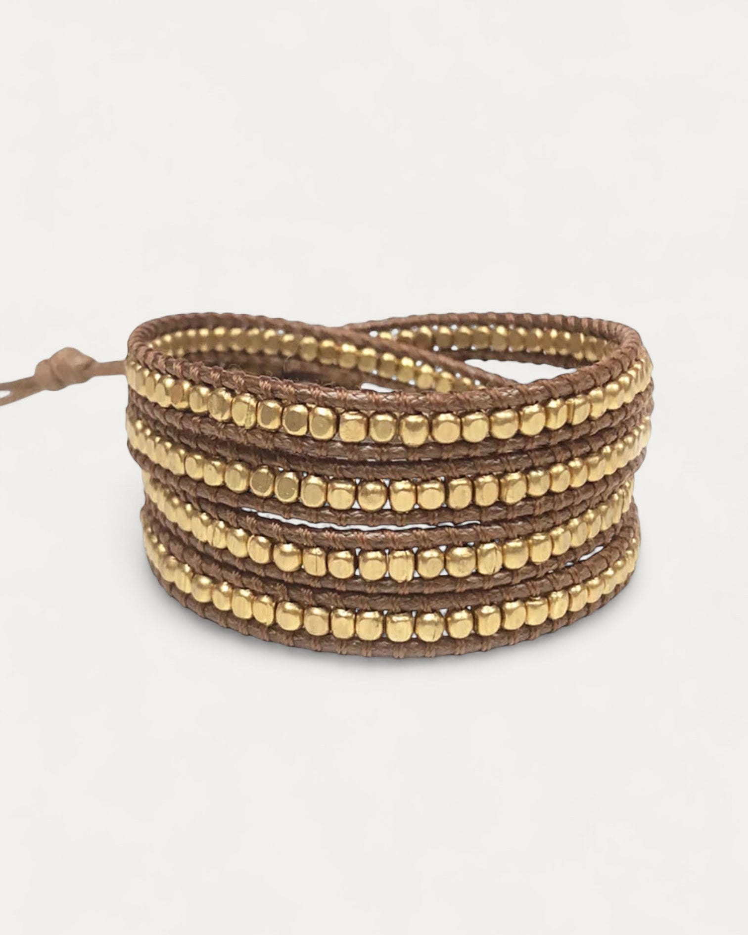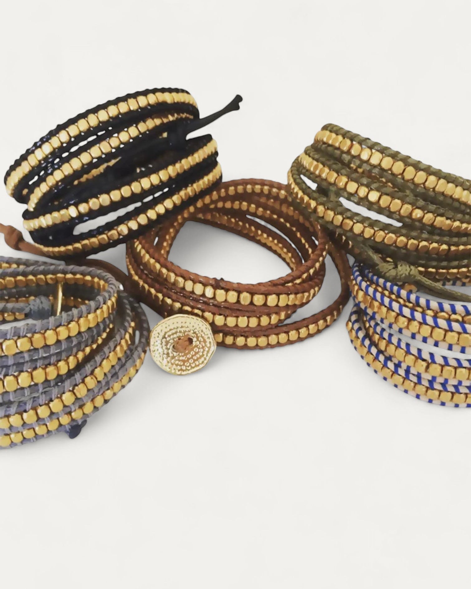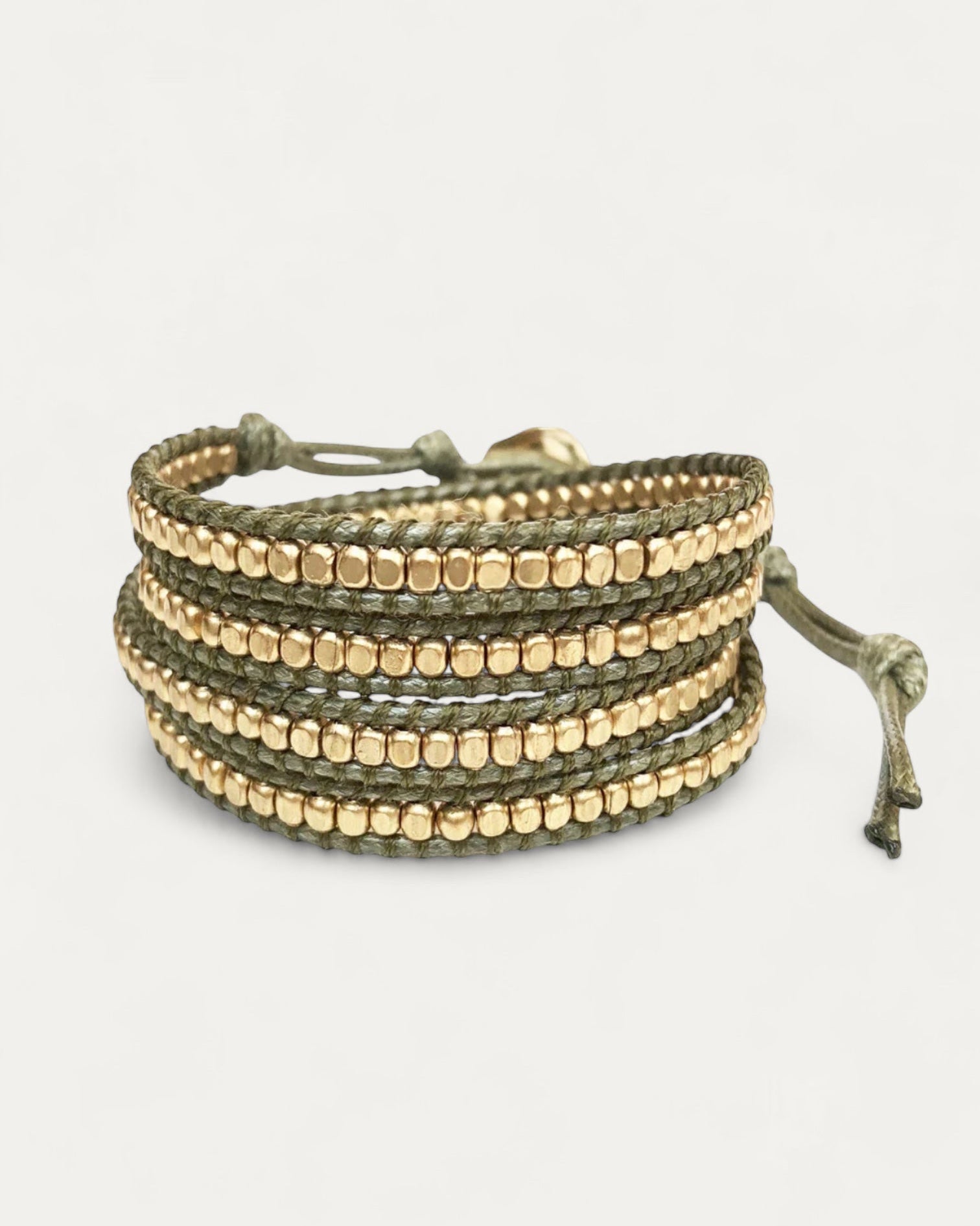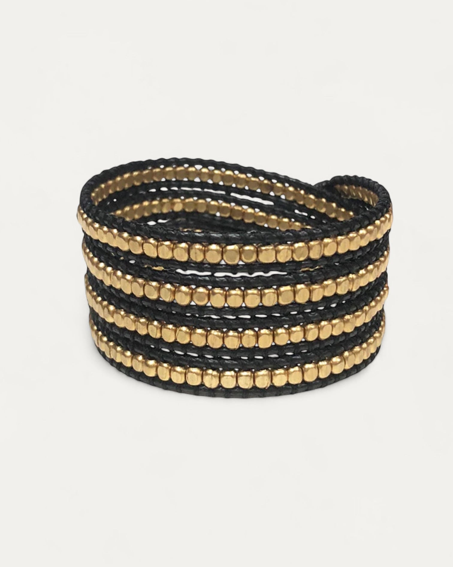 4x Wrap Bracelet, is handcrafted with a combination of cotton and plated metal.