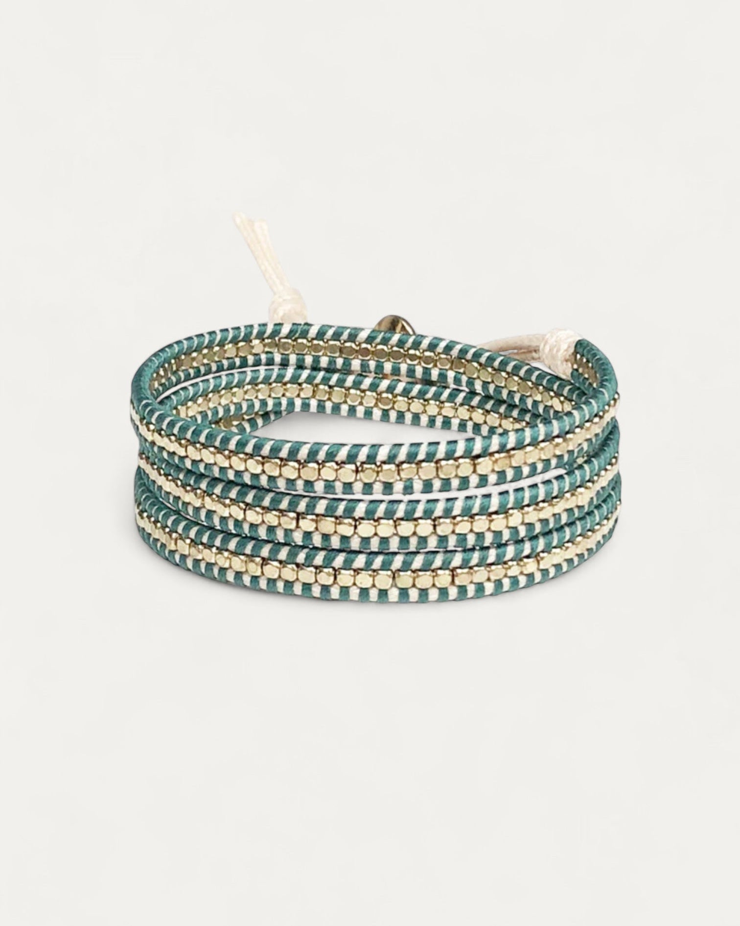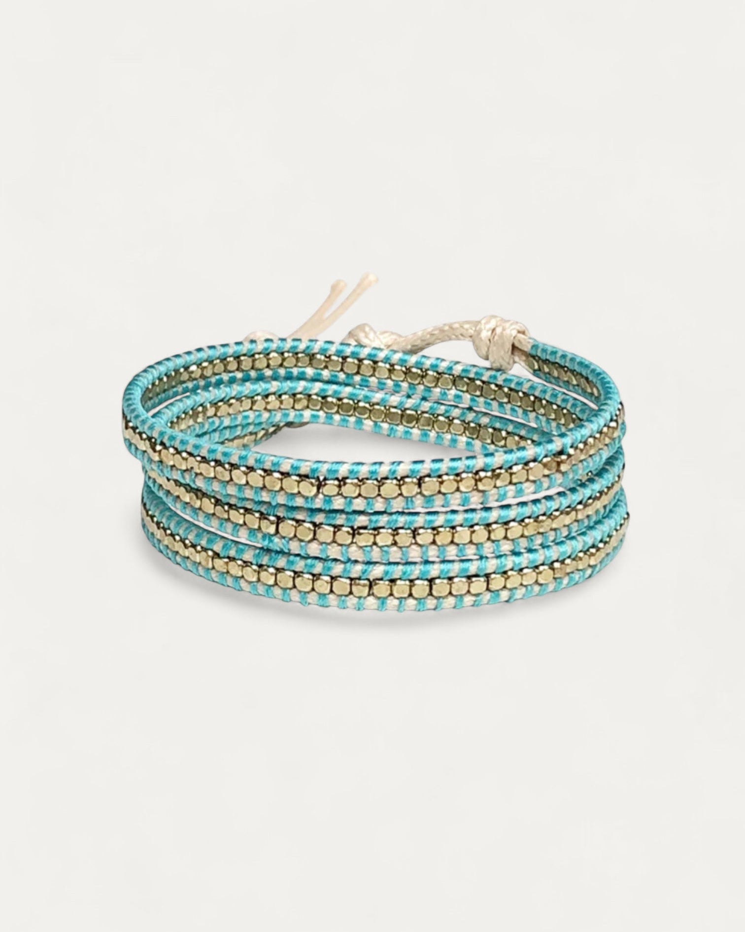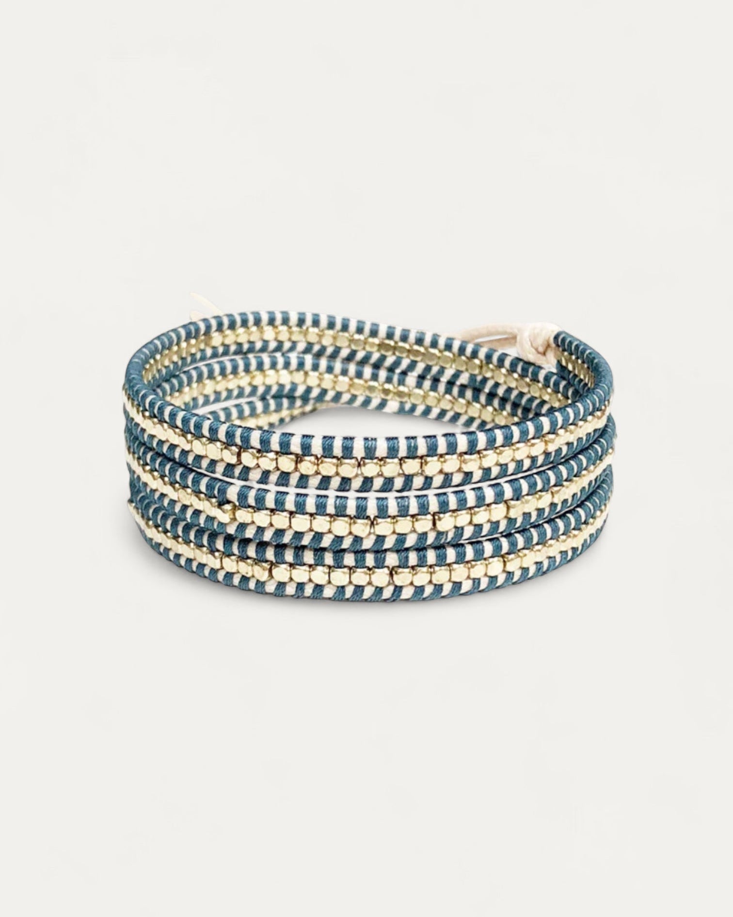 3x Wrap Bracelet, is handcrafted with a combination of cotton and plated metal.