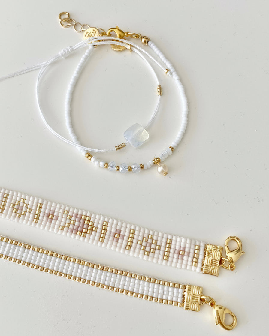 Woven bracelet of beautiful Miyuki beads. Each bracelet contains beautiful colours with a final touch of woven gold, silver and rose beads.