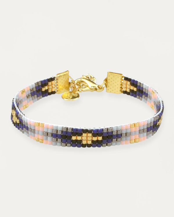 Woven bracelet of beautiful Miyuki beads. Each bracelet contains beautiful colours with a final touch of woven gold, silver and rose beads.