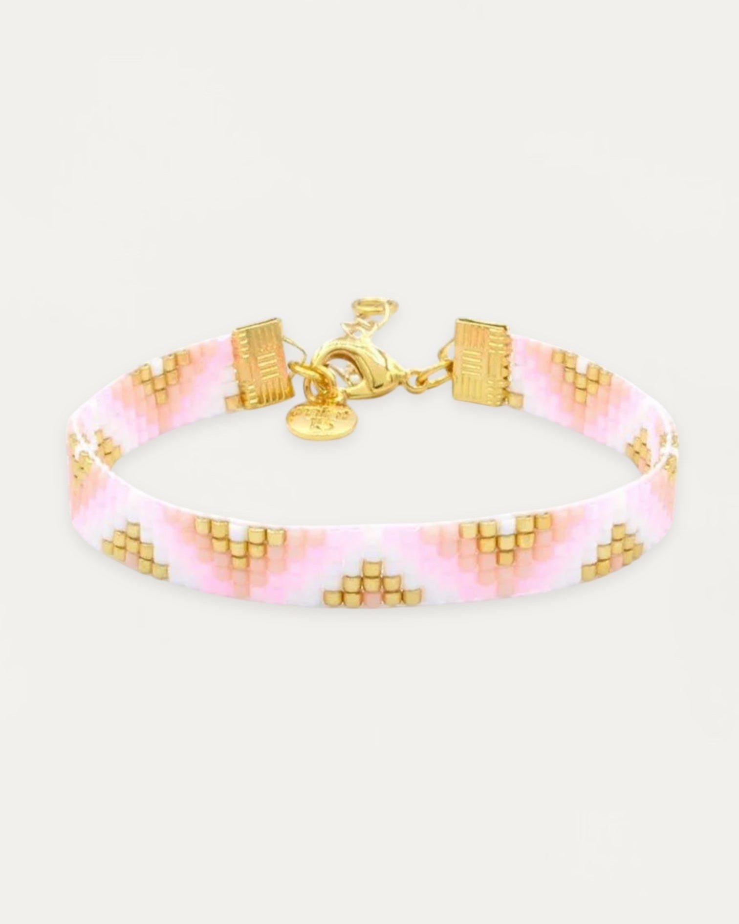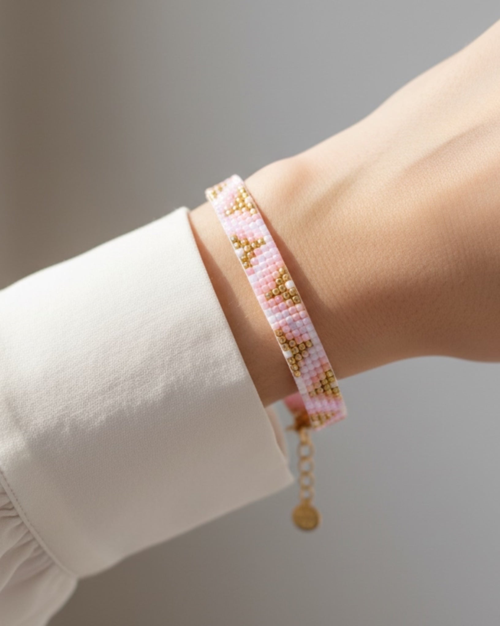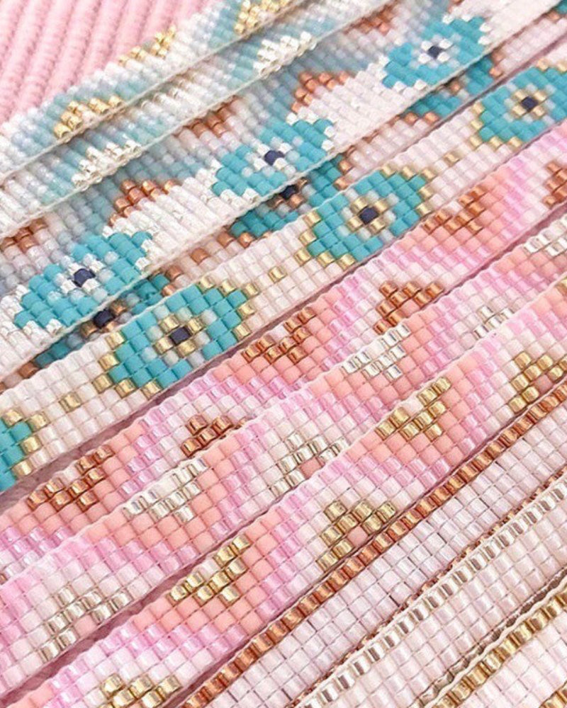 Woven bracelet of beautiful Miyuki beads. Each bracelet contains beautiful colours with a final touch of woven gold, silver and rose beads.