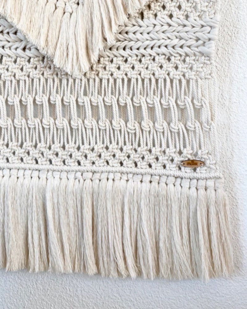 In this tapestry we combine 2 techniques: macrame and weave, to create a new concept.This kind of tapestries are easily stand out in any ambient.