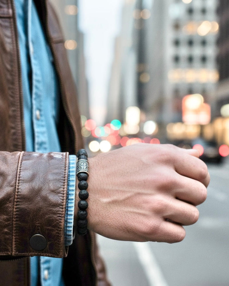 This stretch bracelet is crafted with onyx stones on an elastic string. This natural stone cold tactility makes you keep calm.