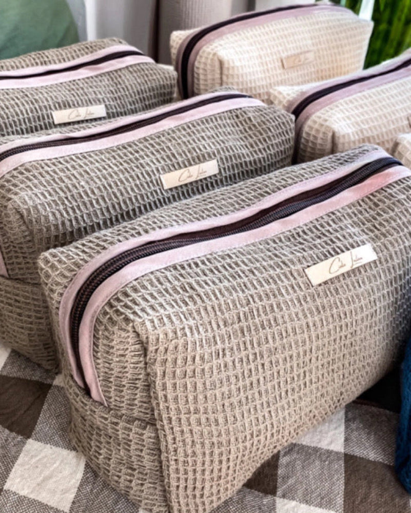 Waffle fabric %100 cotton, they are very wide and with internal lining.