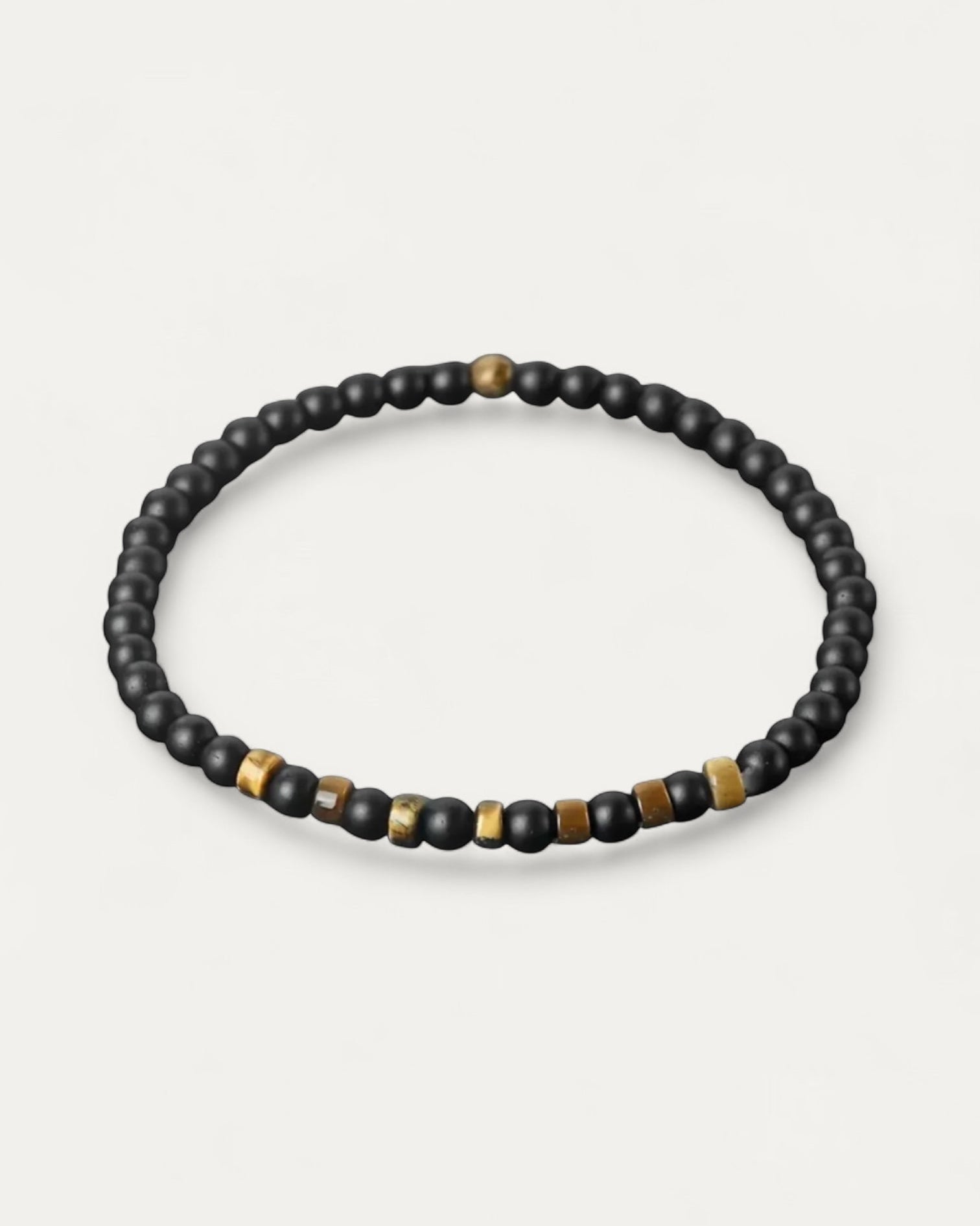 Natural matte black stone bracelet, 4 mm, elastic design with fine beads. Modern and comfortable jewelry, ideal for gifting.