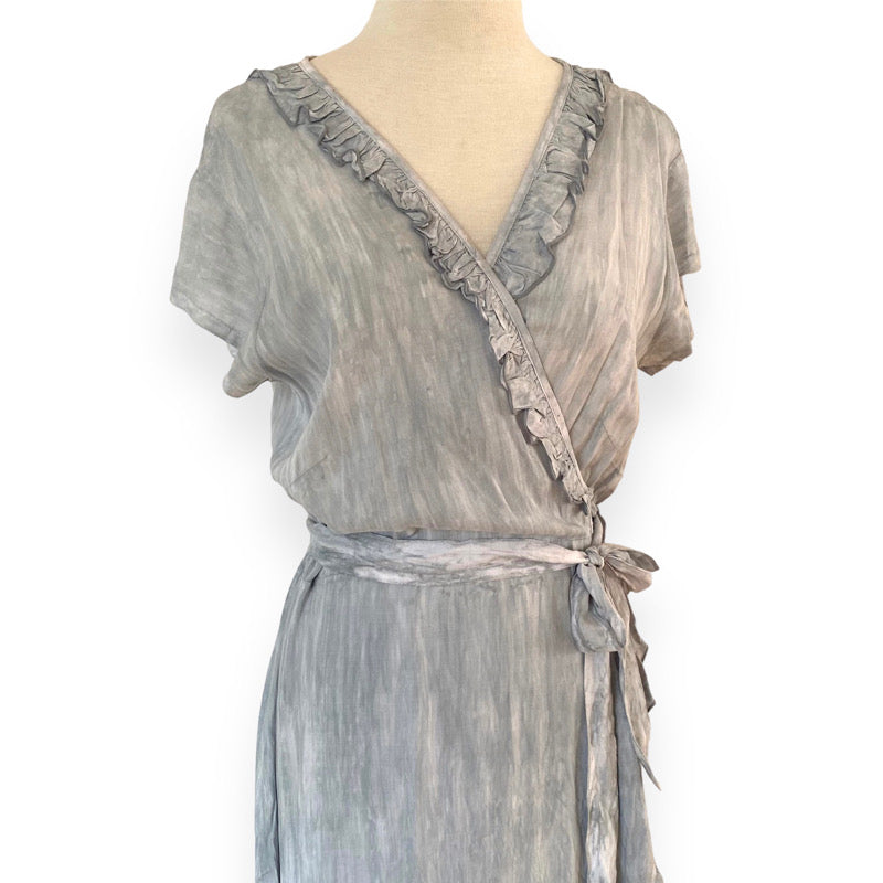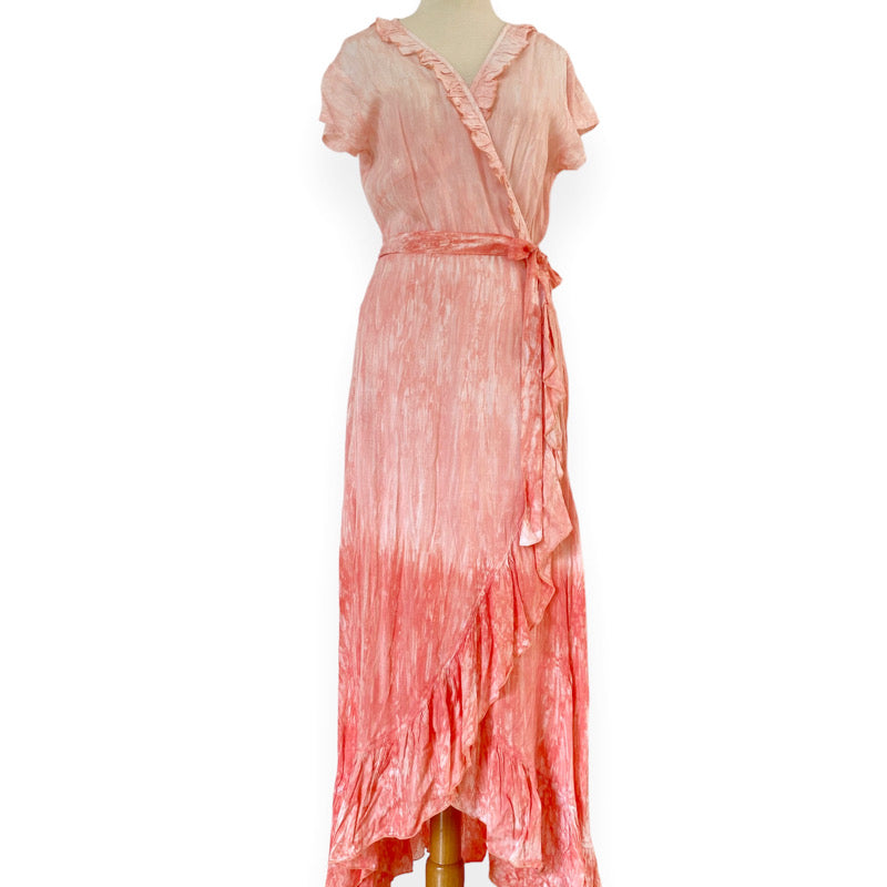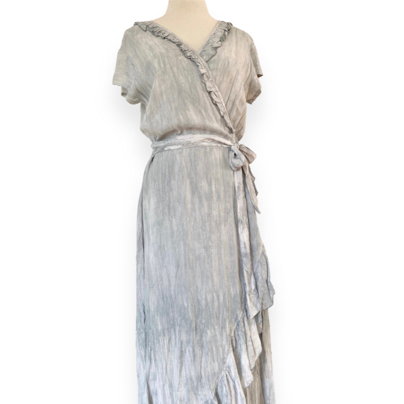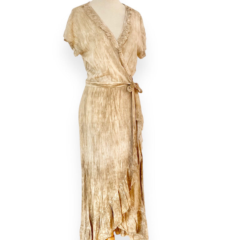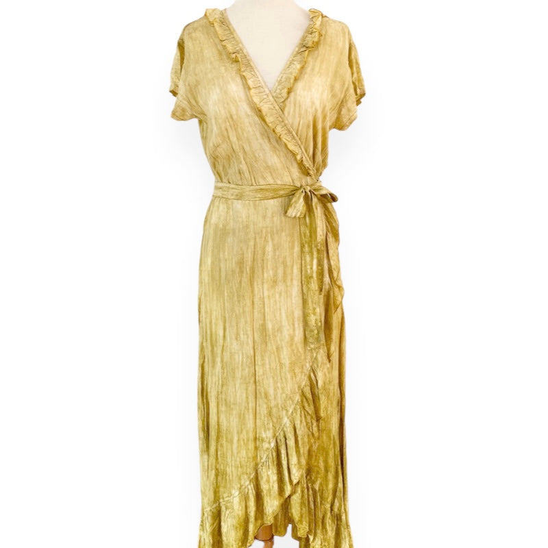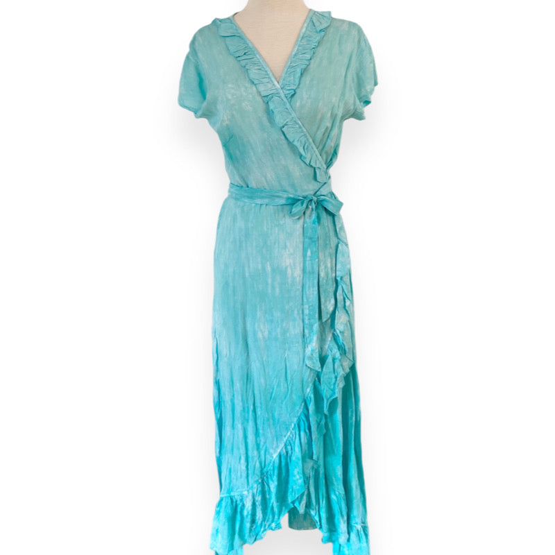 So fun and frilly in a timeless wrap style design, this beautiful dress is perfectly printed with a v-neck, short sleeves and front bow closure adorned with ruffles for added sweet and feminine touch. The crossover design is tied with a wraparound bow to create a fitted silhouette at the waist.