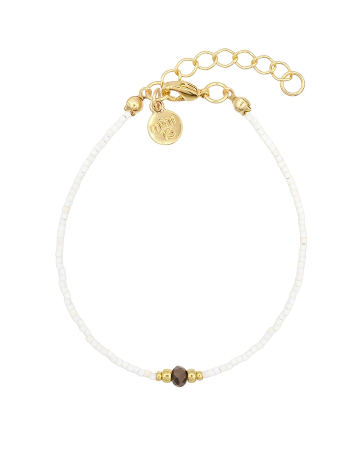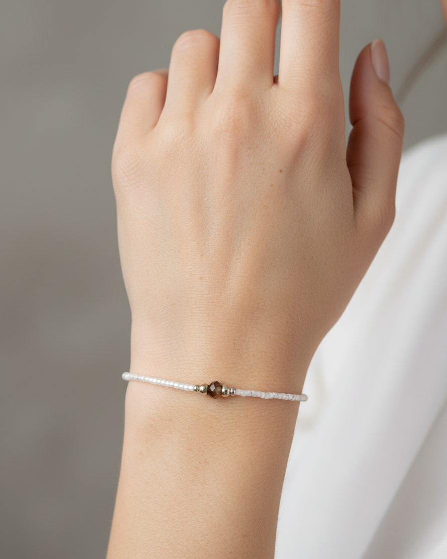 Sweet and thin bracelet of small bronze-colored beads, combined with white glass beads.