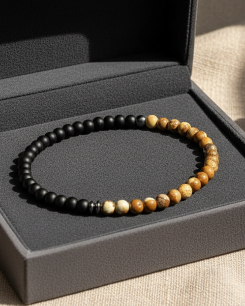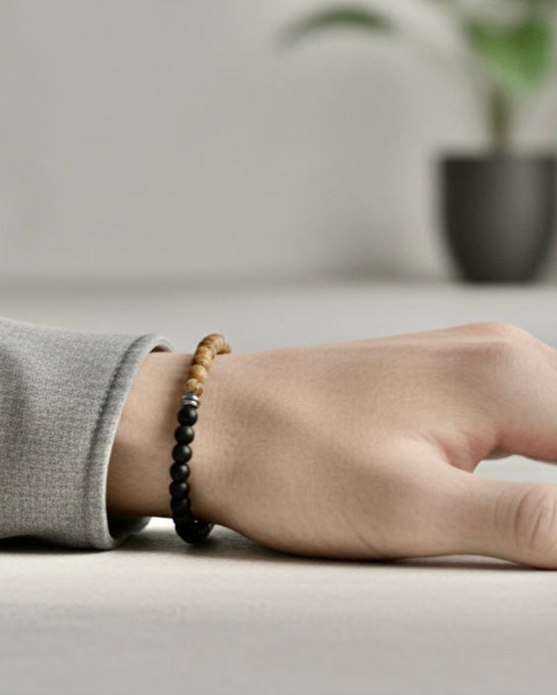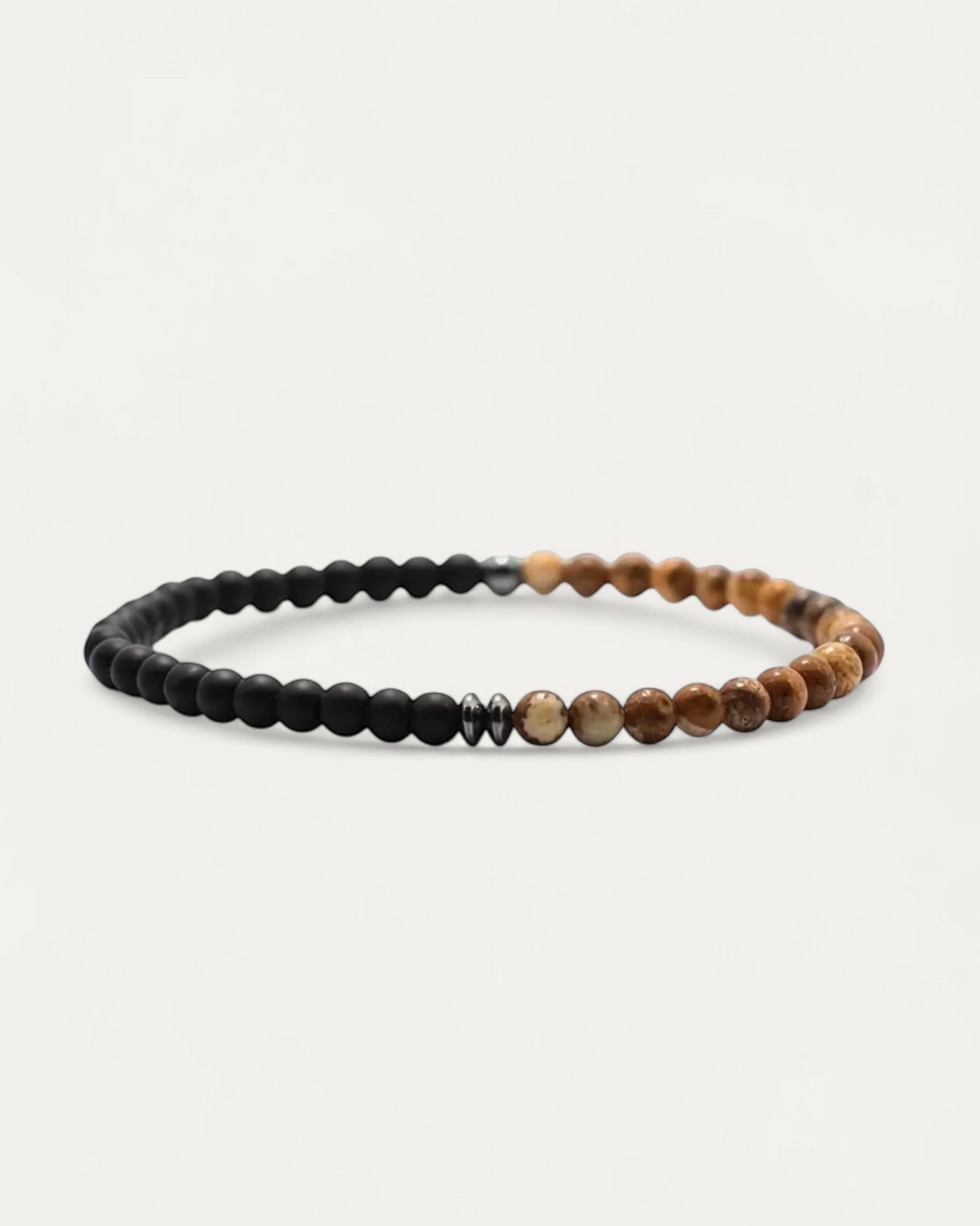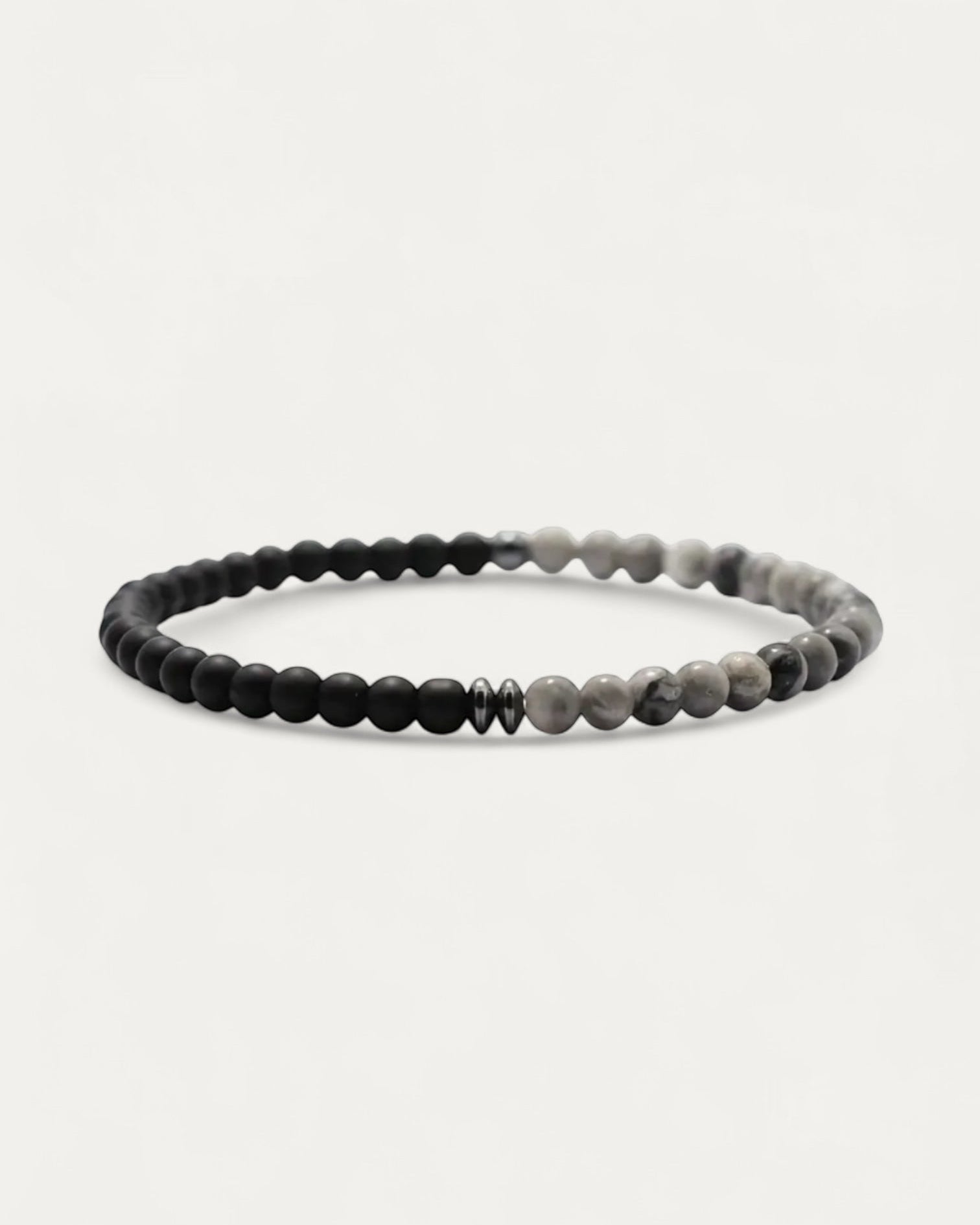 Elastic bracelet for men, handmade with stones beads, 4mm. Minimalist design for casual outfits.
