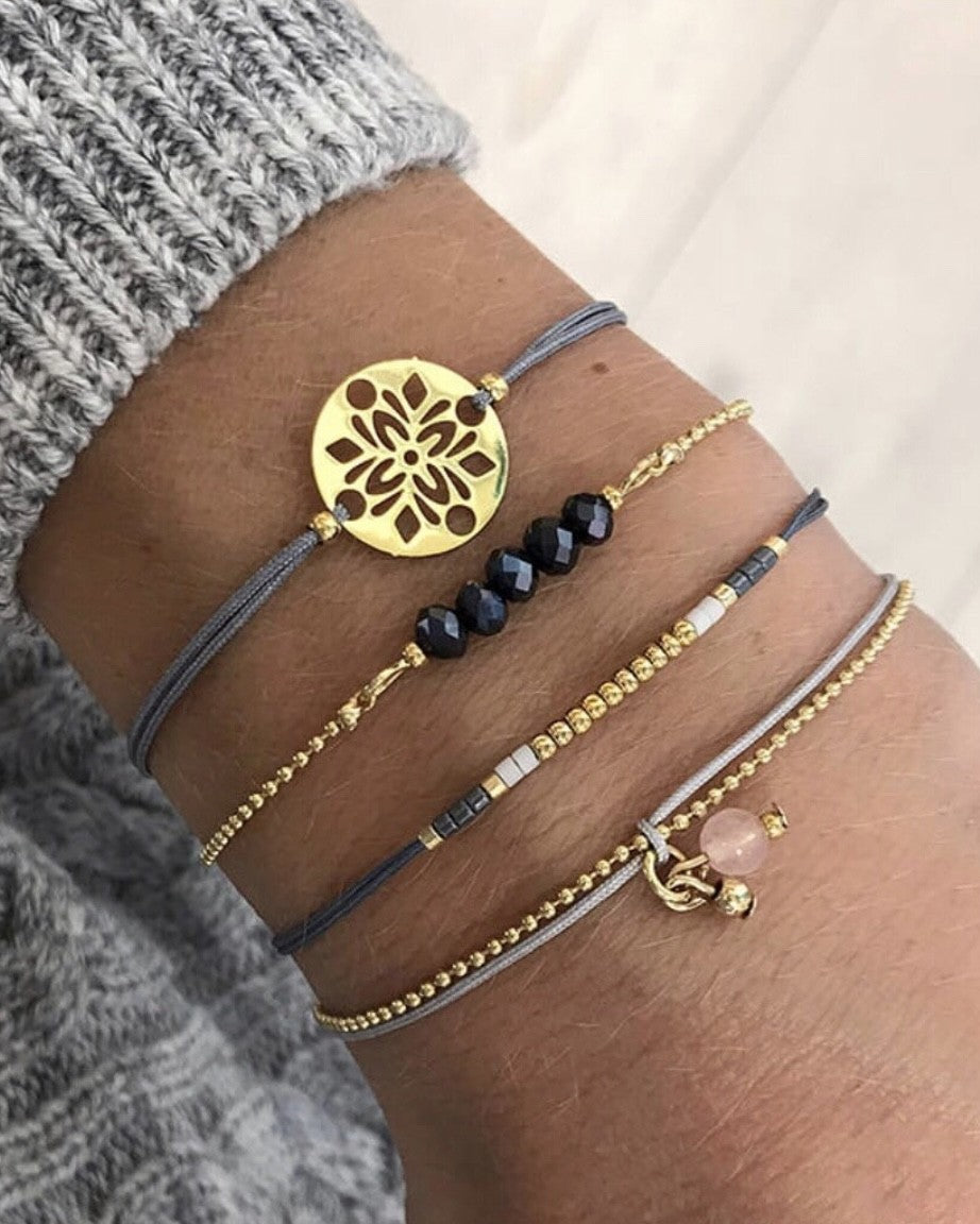 Bracelet with a beautiful ornament in the middle. The cord is gray.