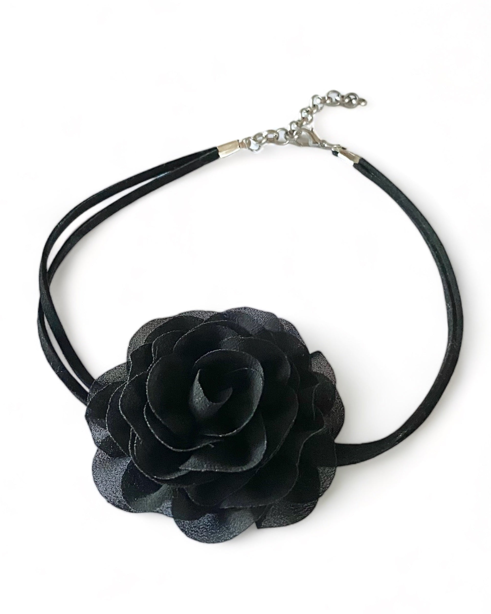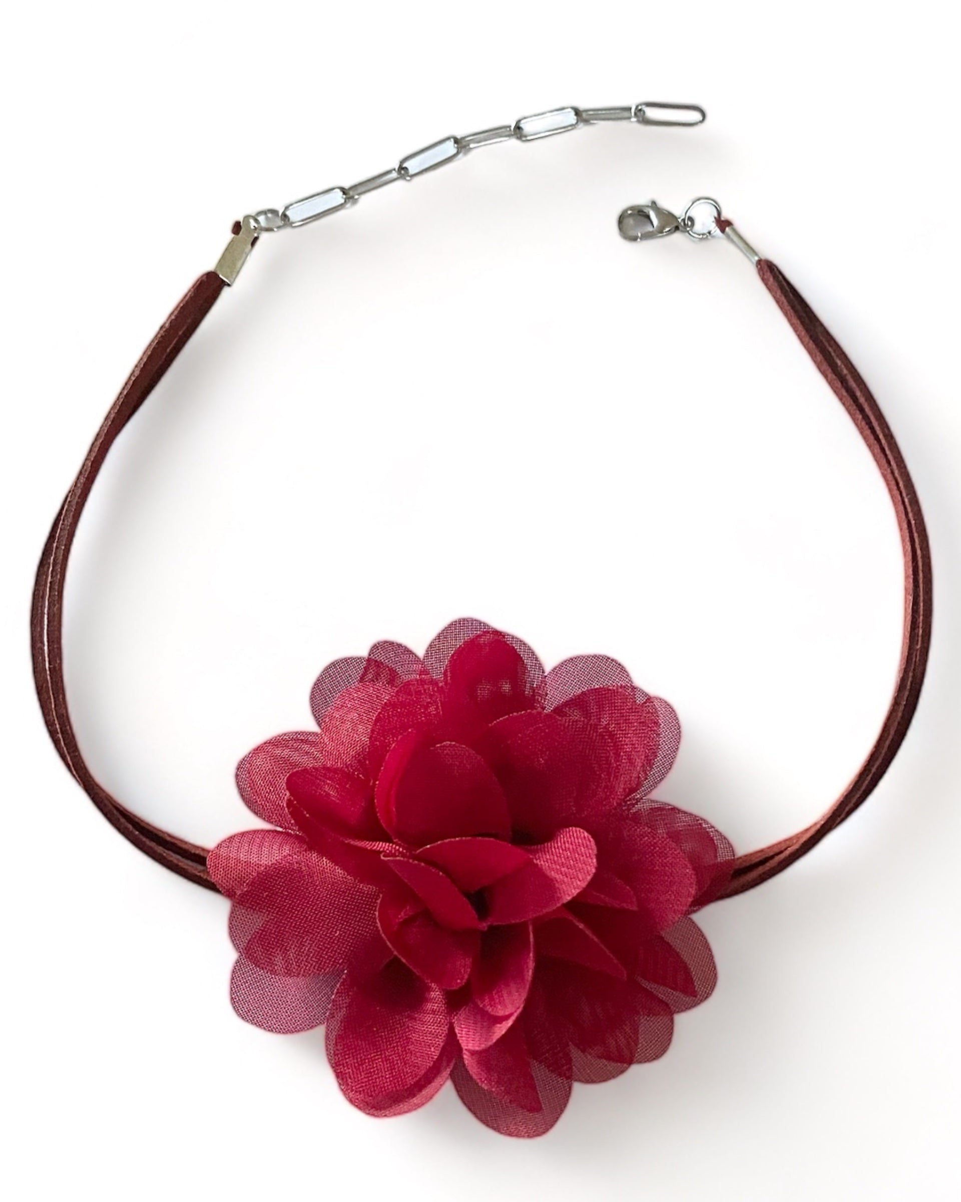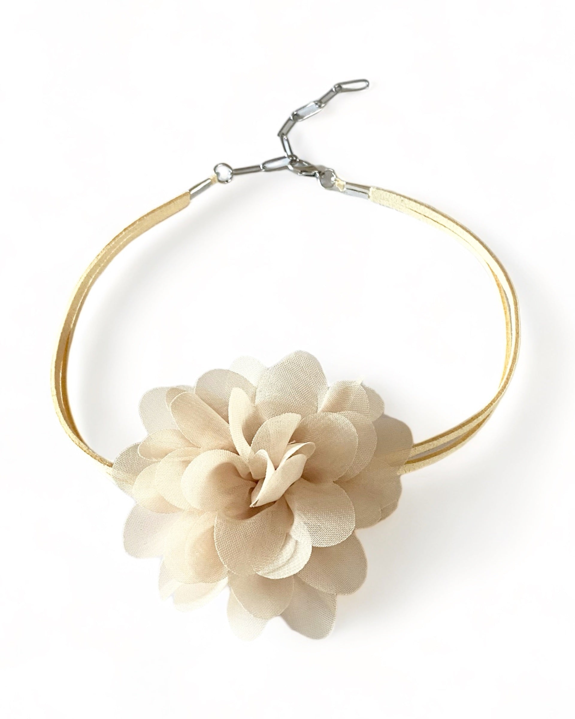 Features: Choker style, floral gauze applique and adjustable link closure.
