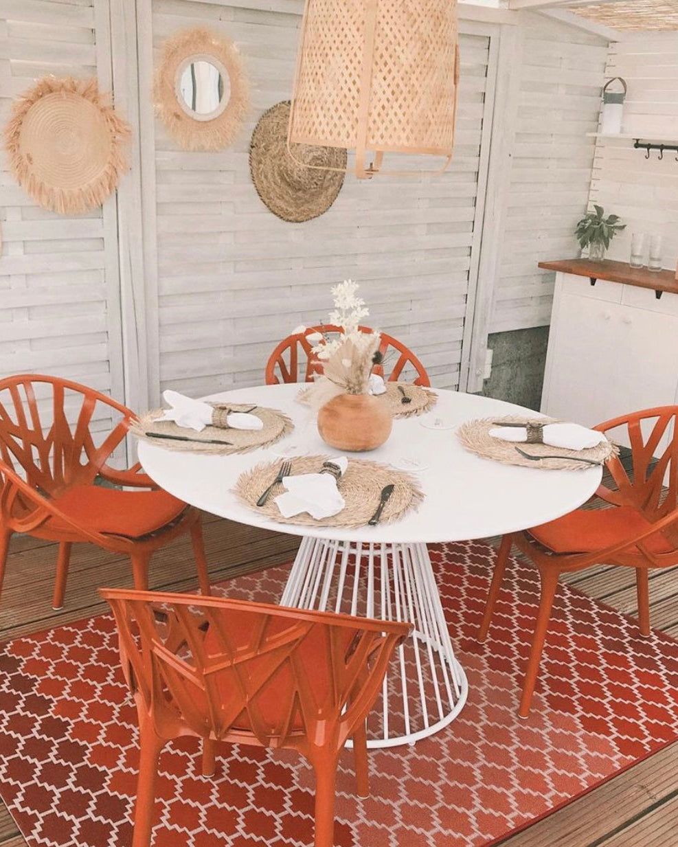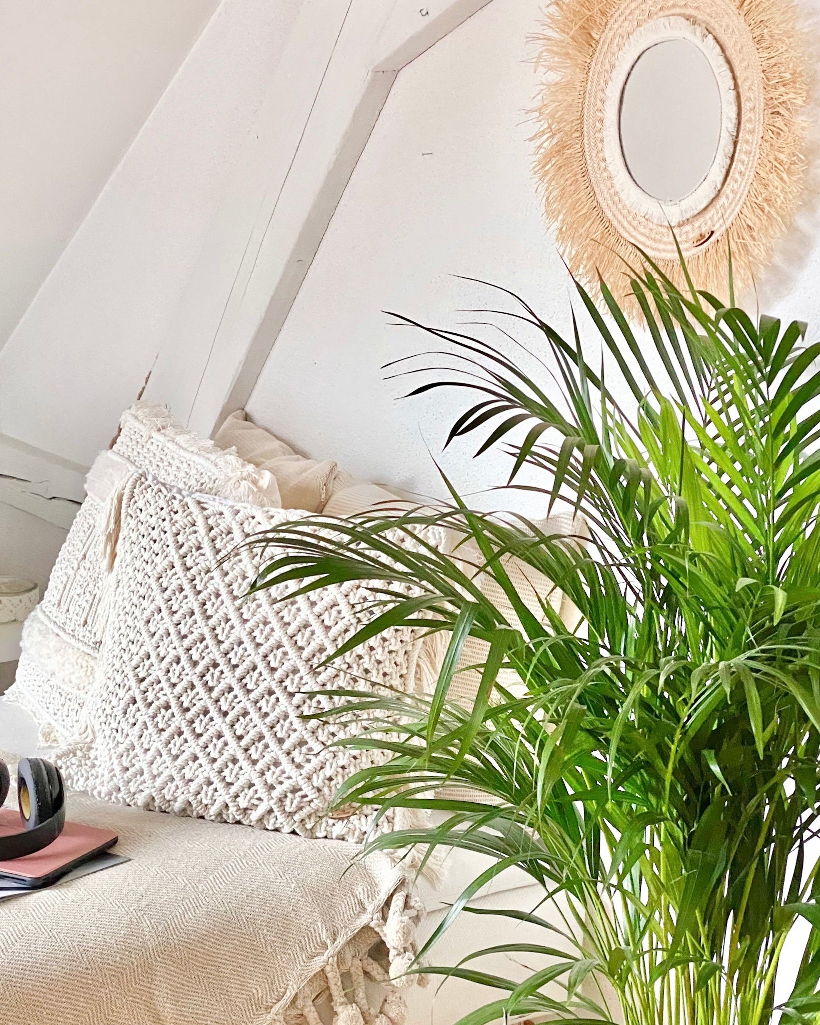Products made from natural materials such as raffia and palm leaves can create an elegant and cozy decor. Combining these products with a decoration in neutral tones, can be a very successful choice.