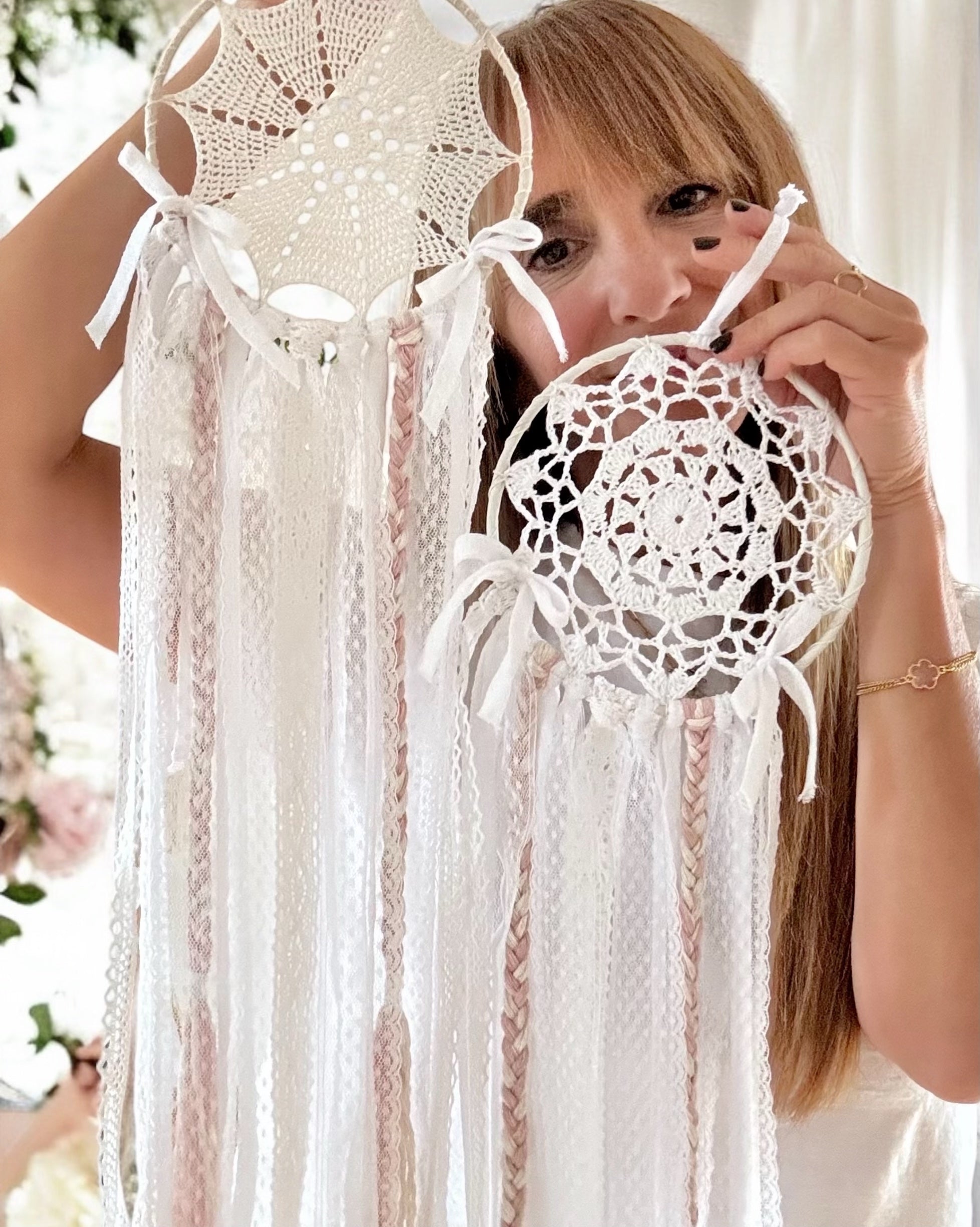 This creation is fully handcrafted with laces, wool, crochet, yarn, and ribbons. The mandala may vary from the model in the photo, because each piece of Muak is unique and therefore different.