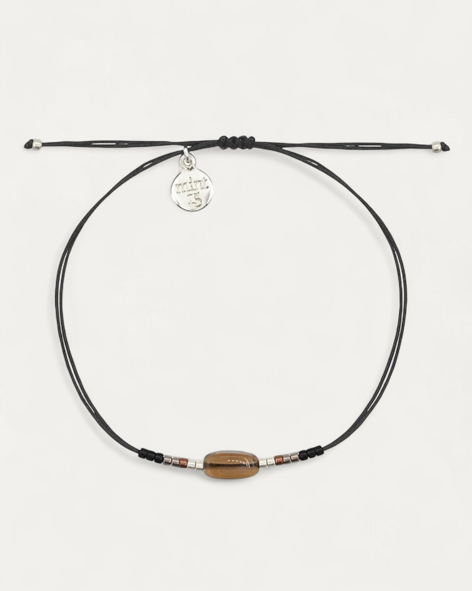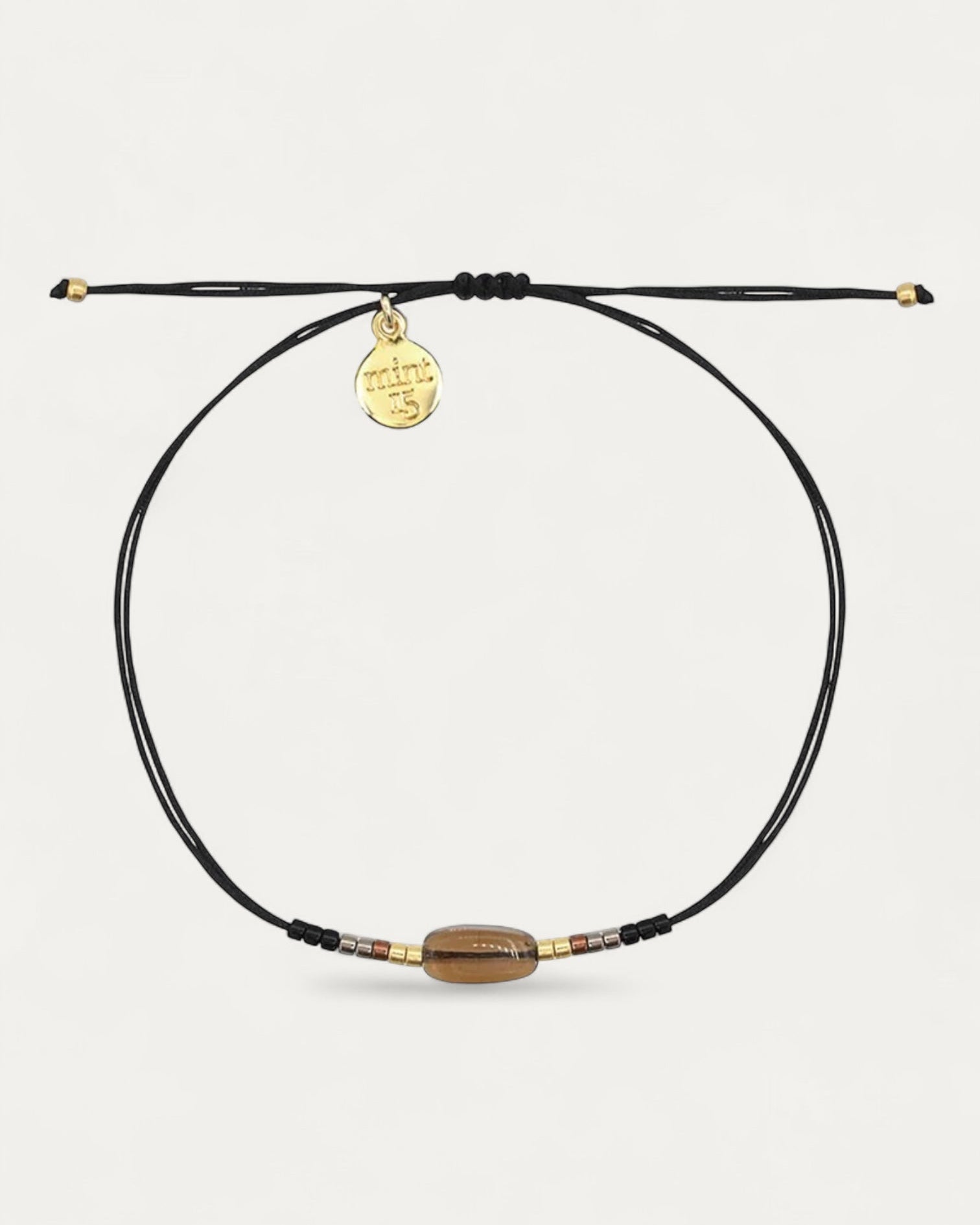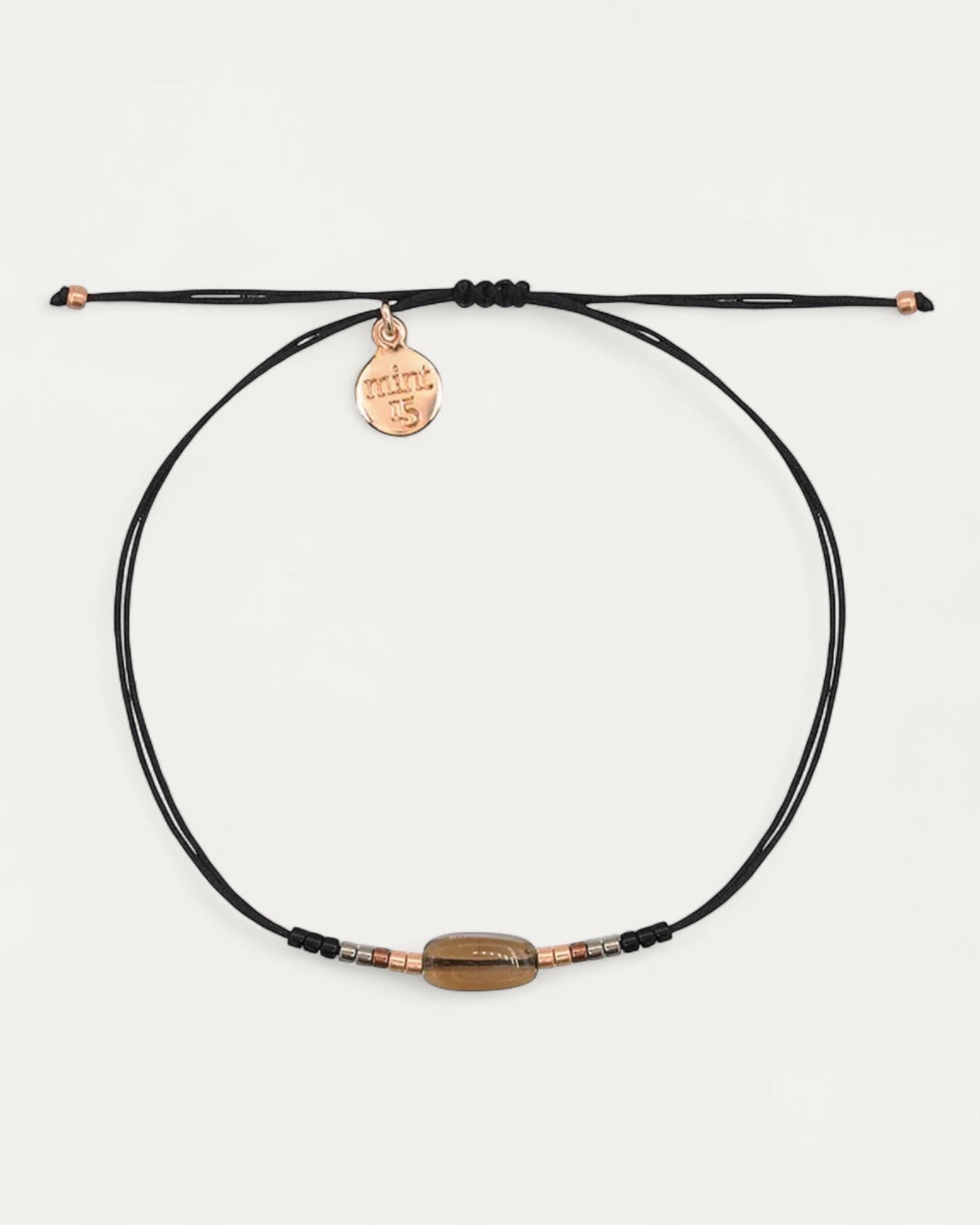 Cute bracelet made from plated Miyuki beads and delicate black cords with a slight shine.