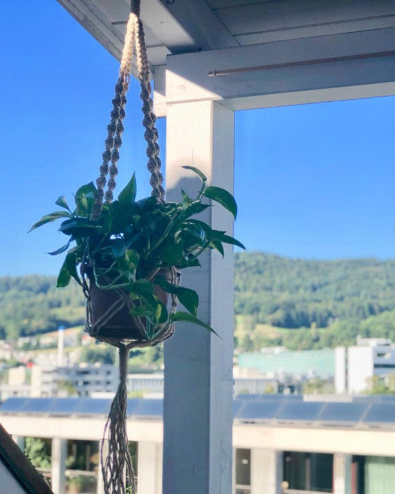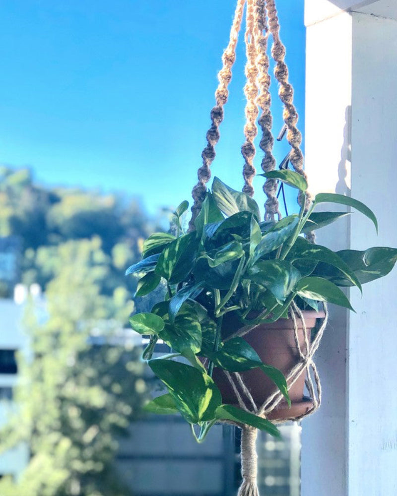 Handmade plant hanger made with jute rope.