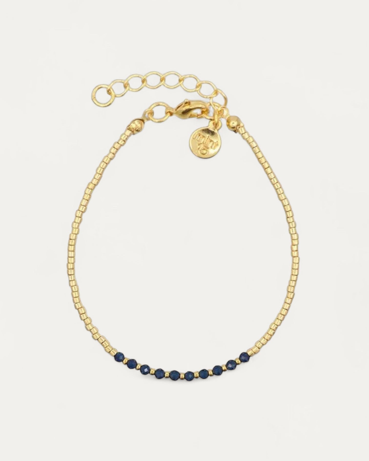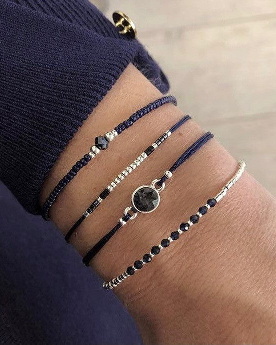 Sweet and thin bracelet of small blue-colored beads, combined with other beautiful glass beads.