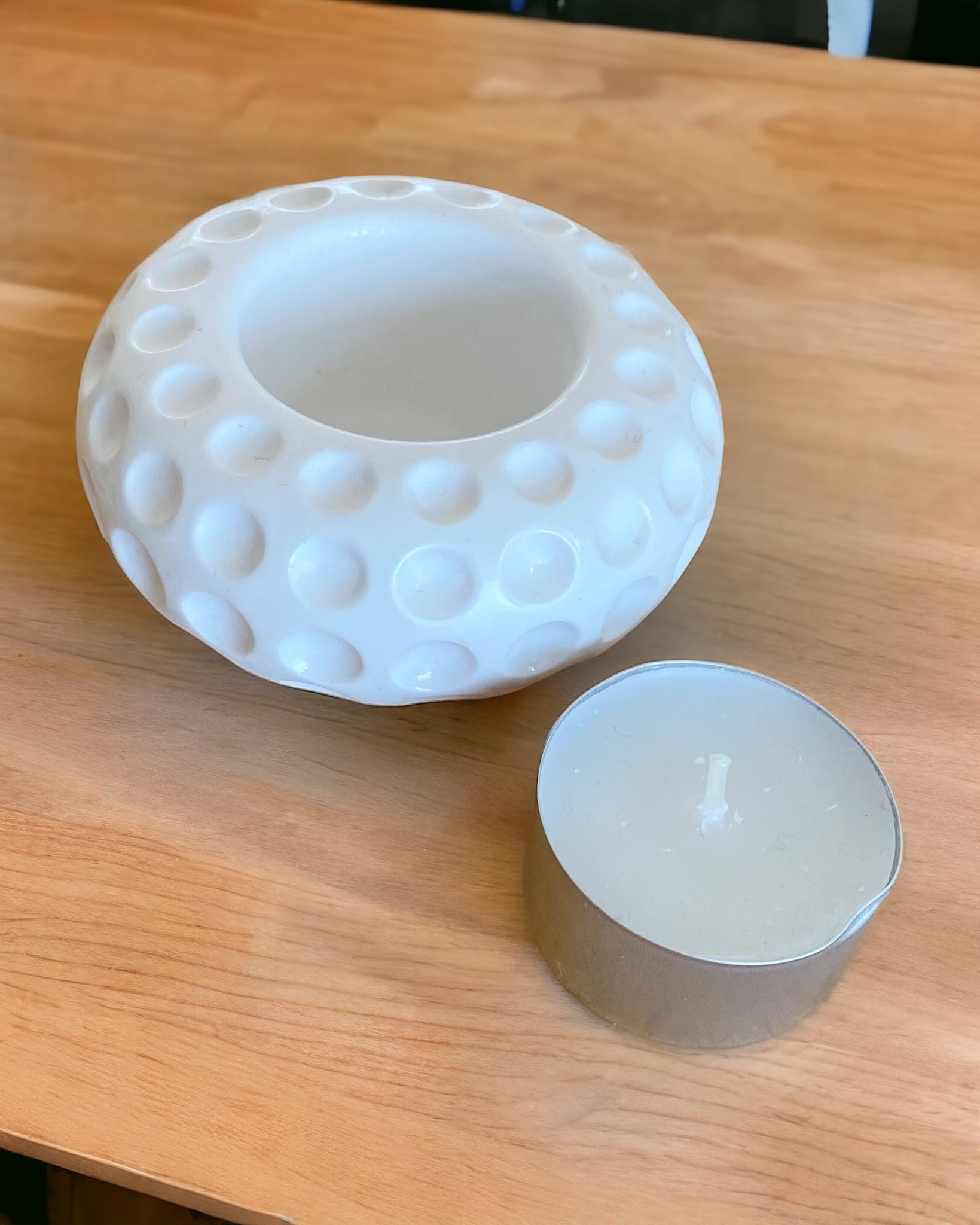 Includes one fragrance-free tea candle ( 4 x 2 cm.)