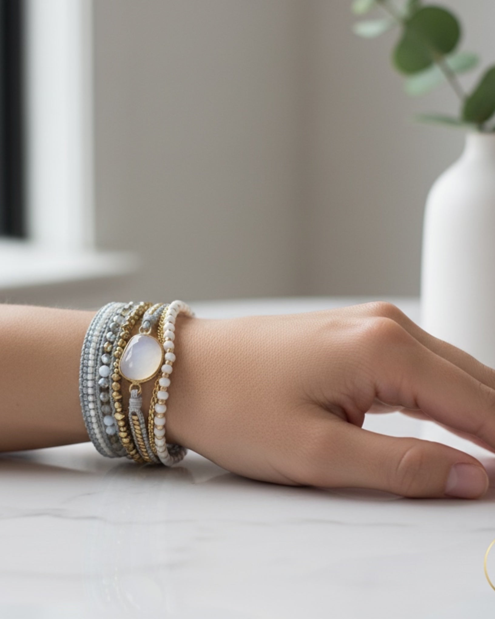7x Layers bracelets, handcrafted with a combination of semi-precious stones, crystals and metal.