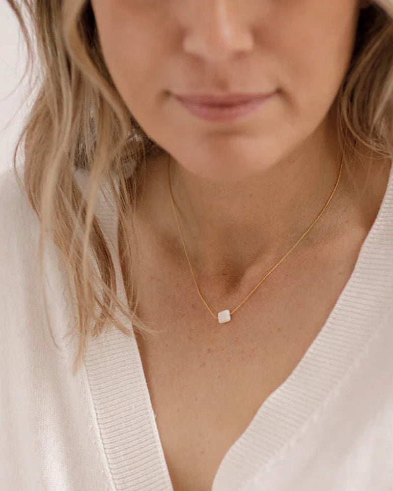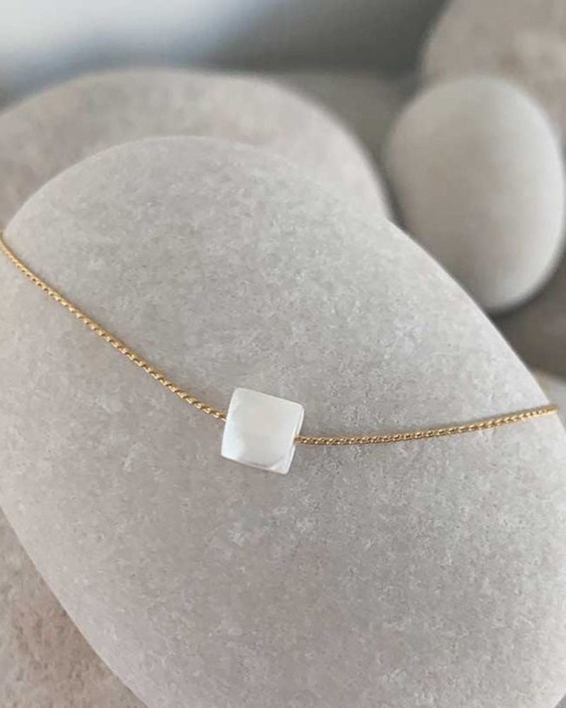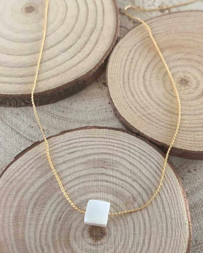 Gold necklace with mother-of-pearl square, very simple and that combines with all kinds of colors.