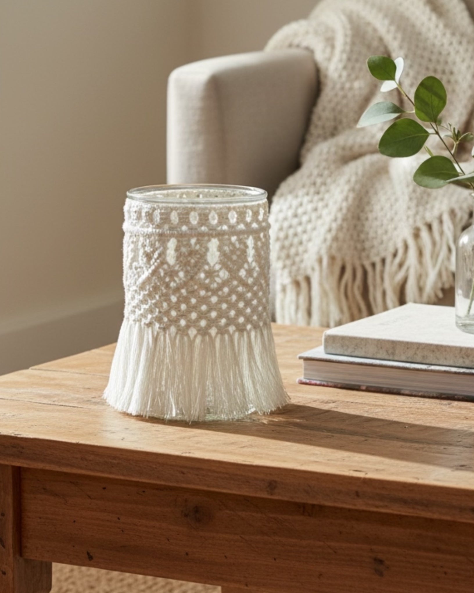 Candlelight / Flower vase with macrame cover, made of macrame cord. This piece is handmade with love by Muak. It's a unique piece. It would be a perfect gift for someone special on any occasion. This jar would also look great as a tealight candle holder in your lounge room.