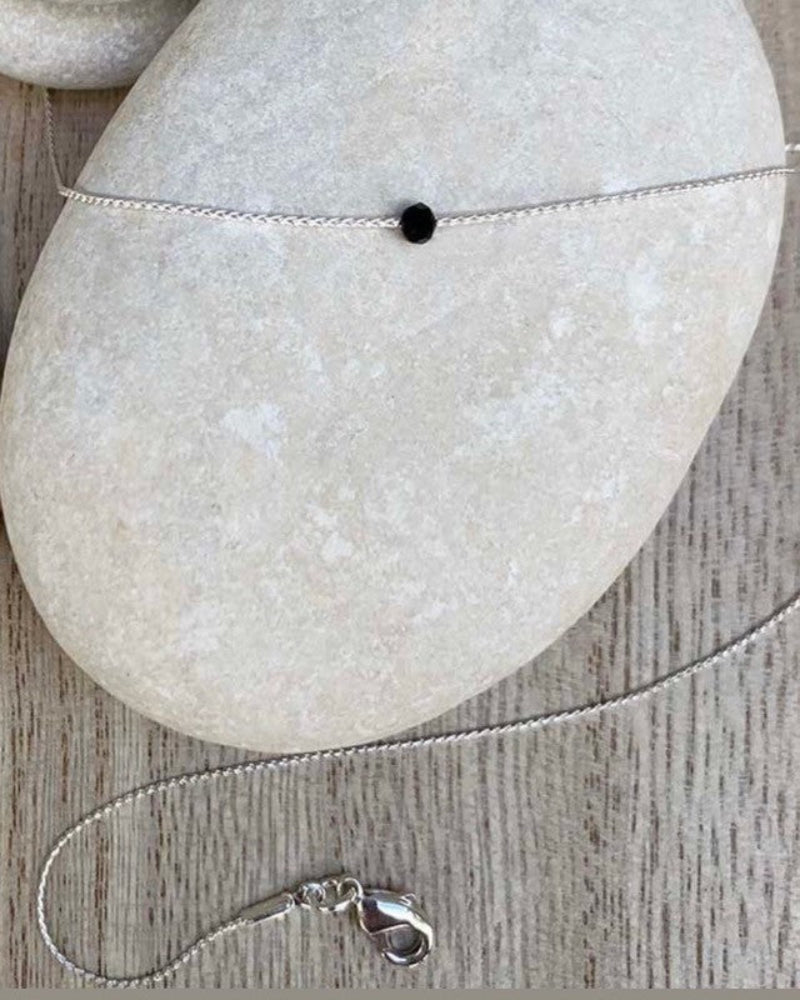 Silver plated necklace with an oval faceted crystal centerpiece with a simple 0.7 mm chain, 37 cm long with extension.