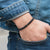 Elastic bracelet for men, handmade with black natural stone beads, 4mm. Minimalist design for casual outfits.