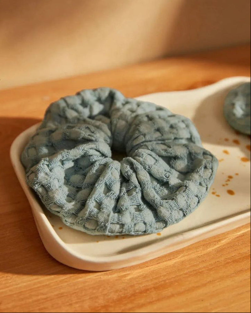 The Green Ola Scrunchie is the most practical and stylish accessory of the season. Made from Calma House's most lovingly woven fabric, this scrunchie is soft, cozy and perfect for a pulled-back look in seconds. Available in two colors.