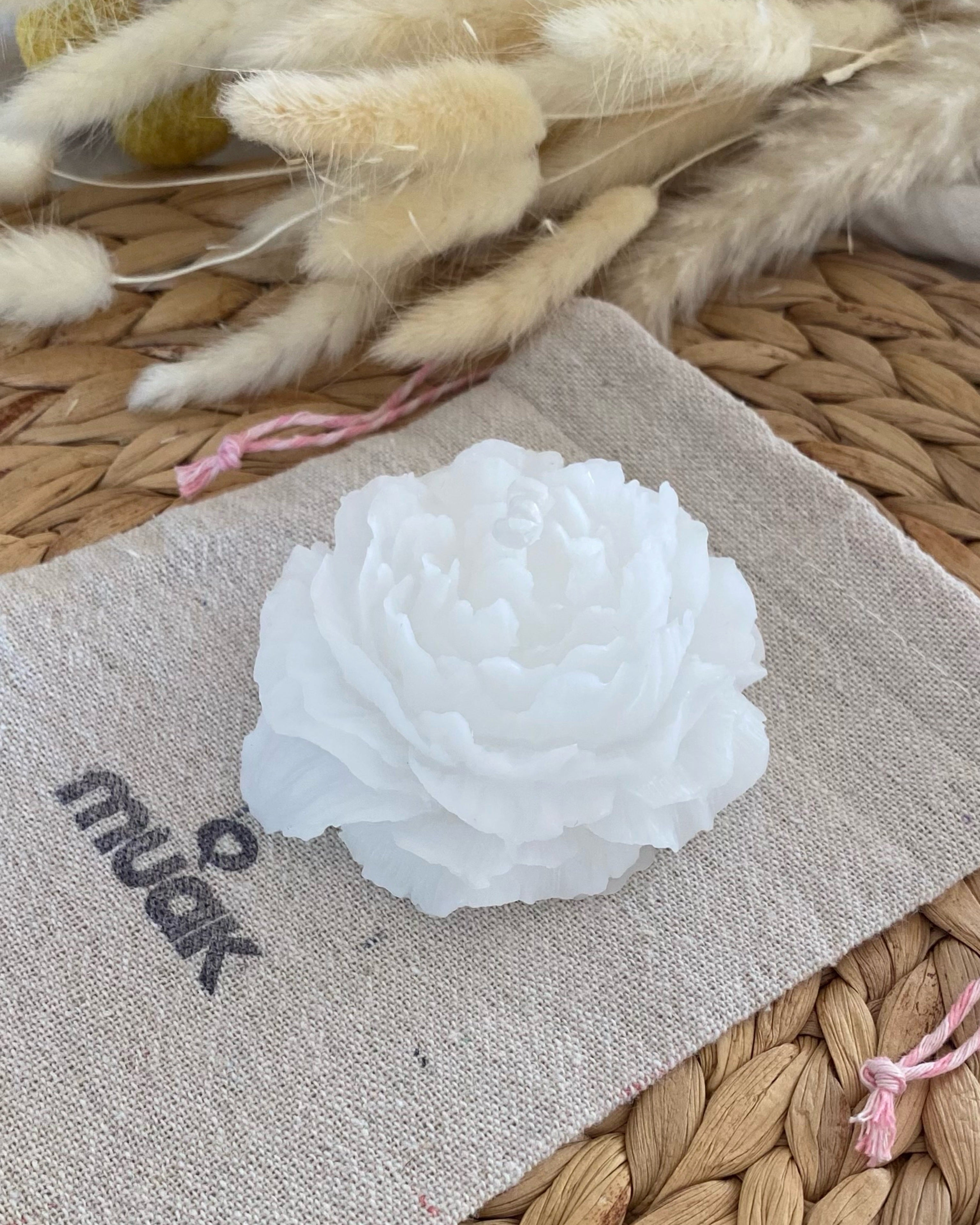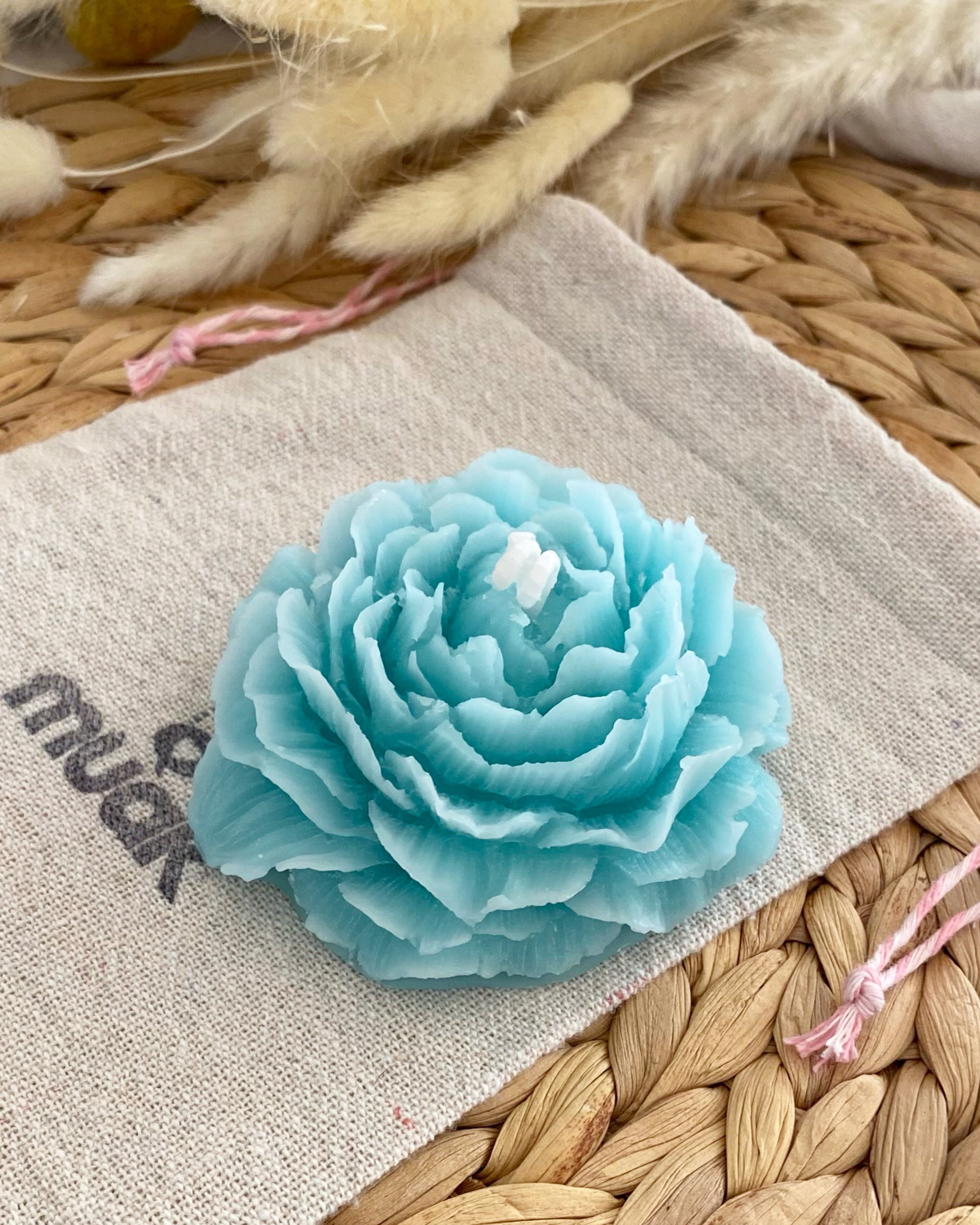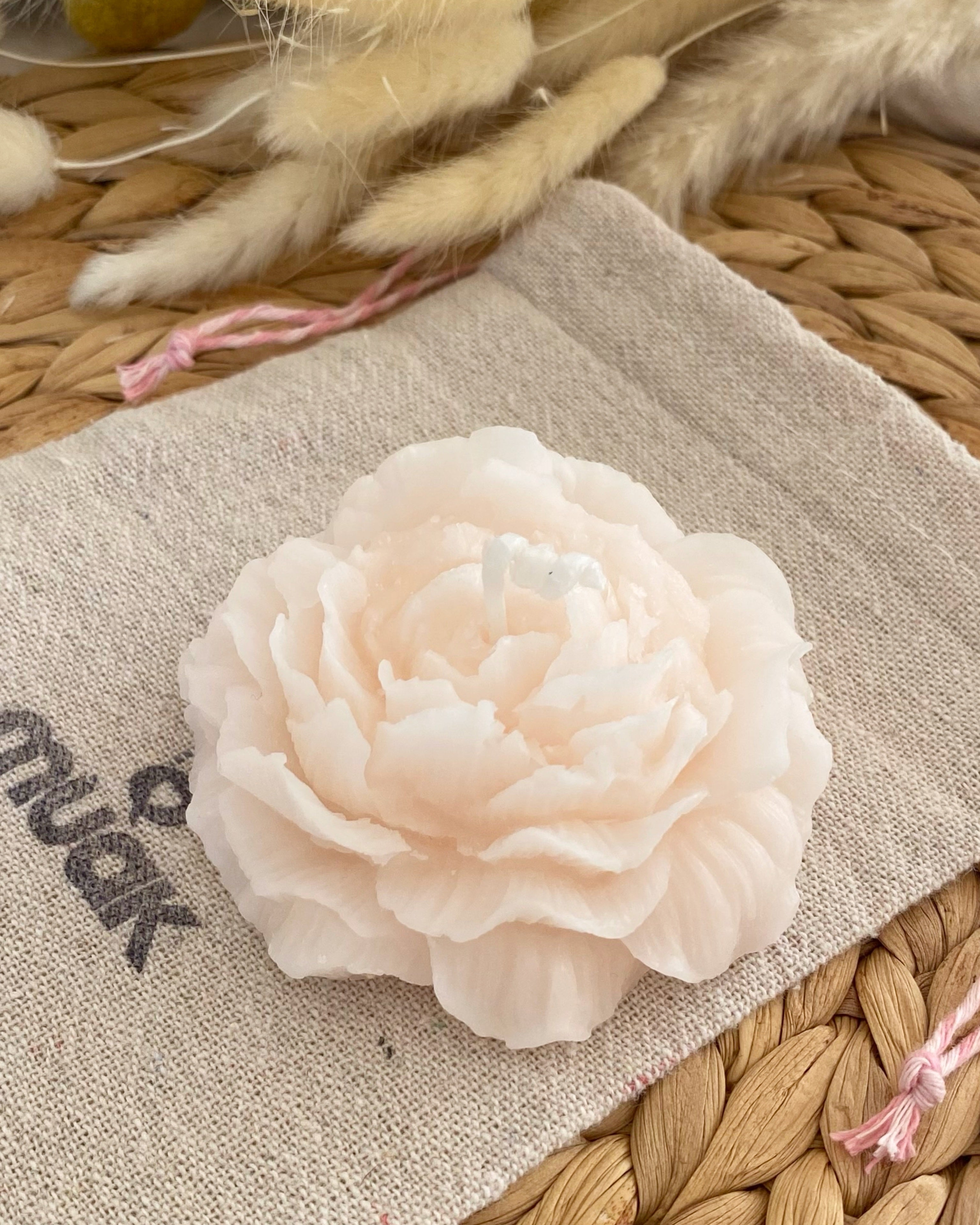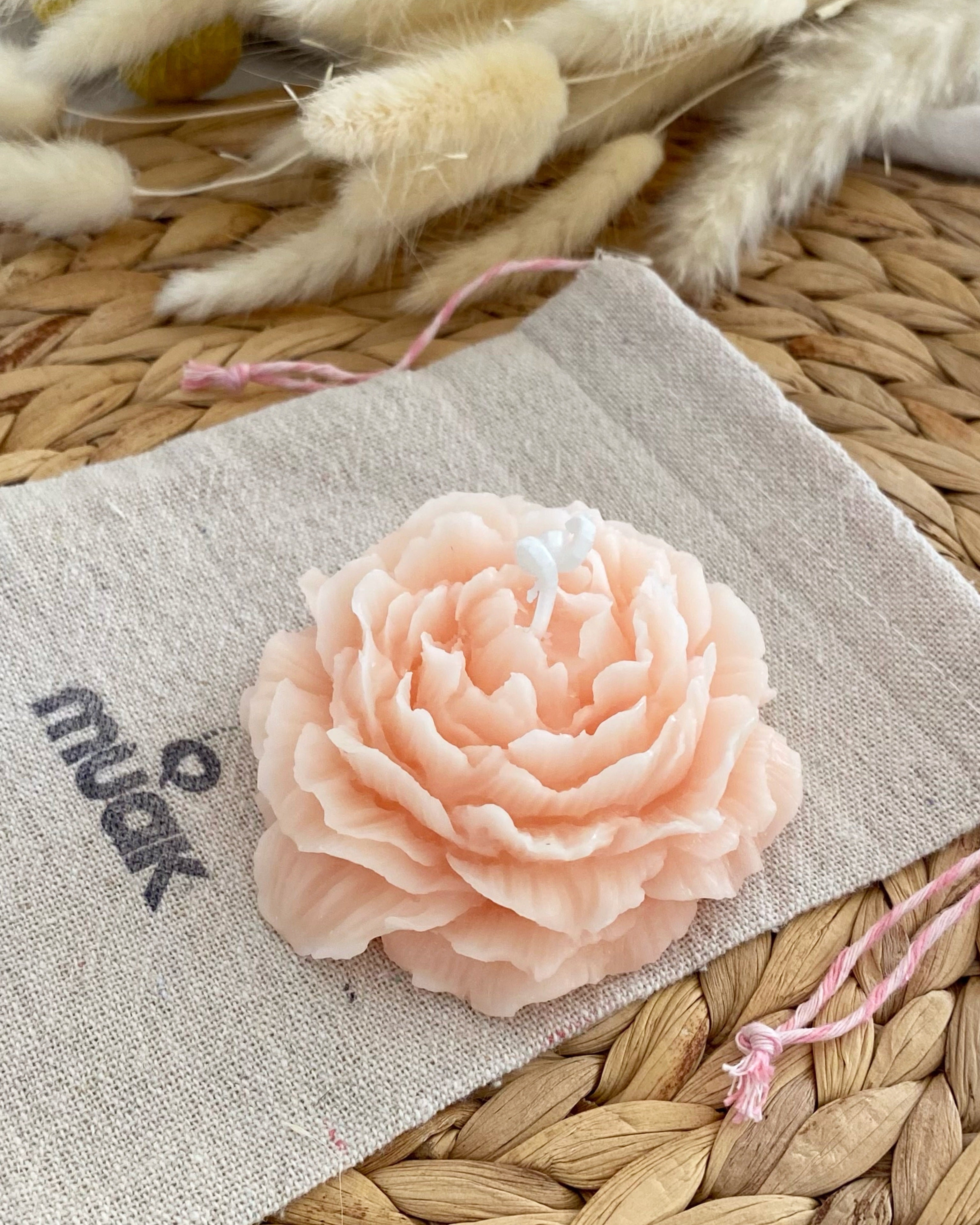 Each candle is handmade by Muak, making it a unique handcrafted product.