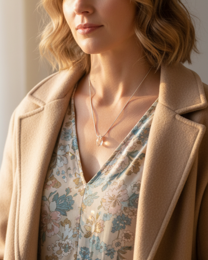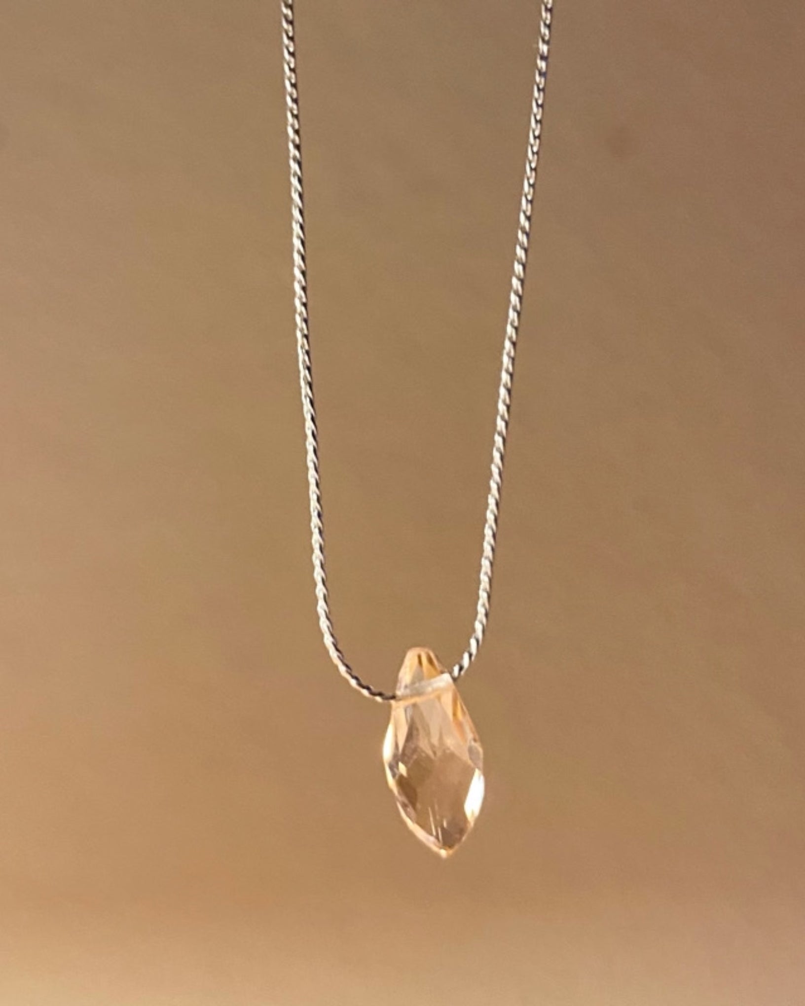 Minimalism and elegance in this necklace with pink crystal teardrop.