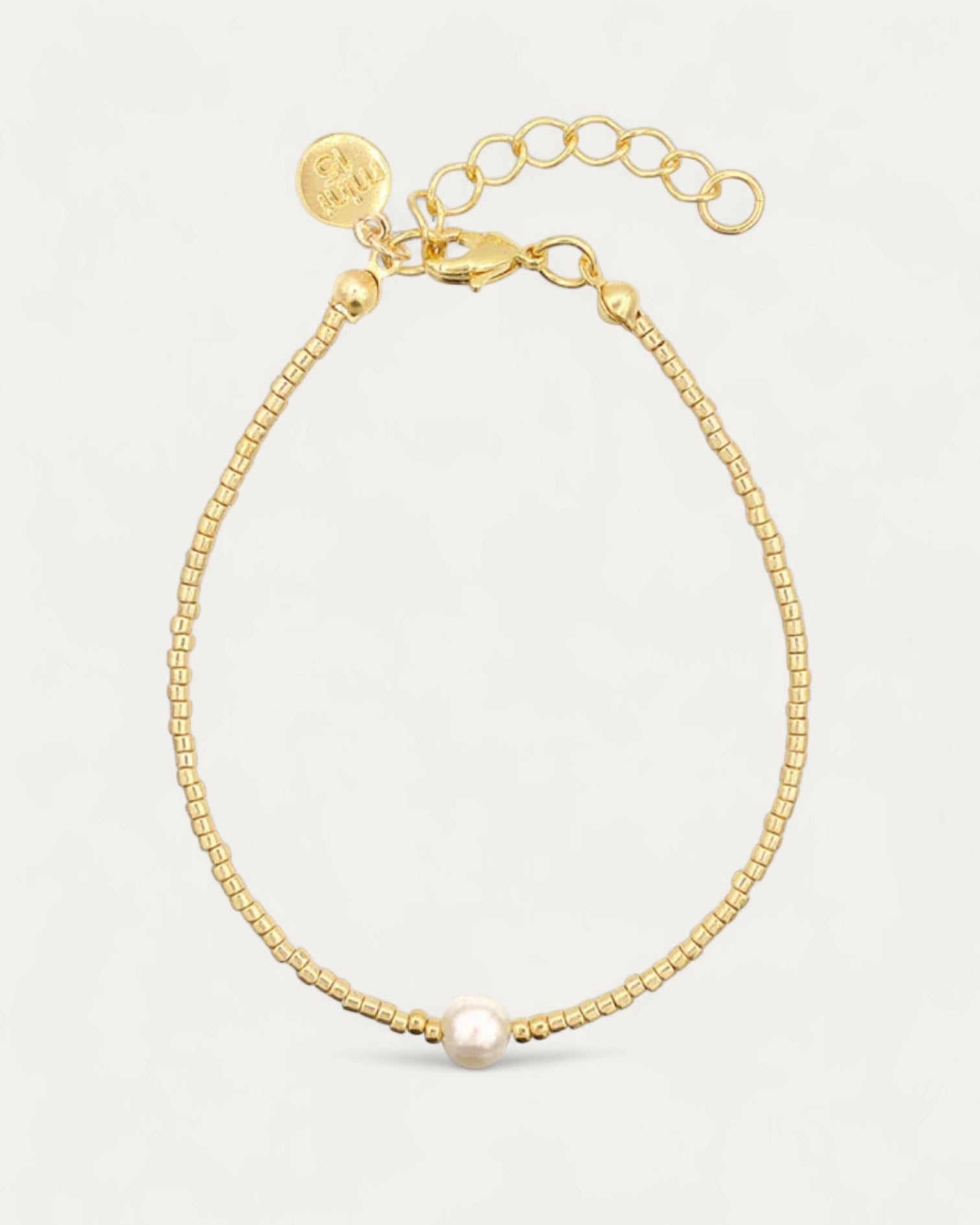 Simple but very elegant bracelet of gold and silver beads with a freshwater pearl in the middle.