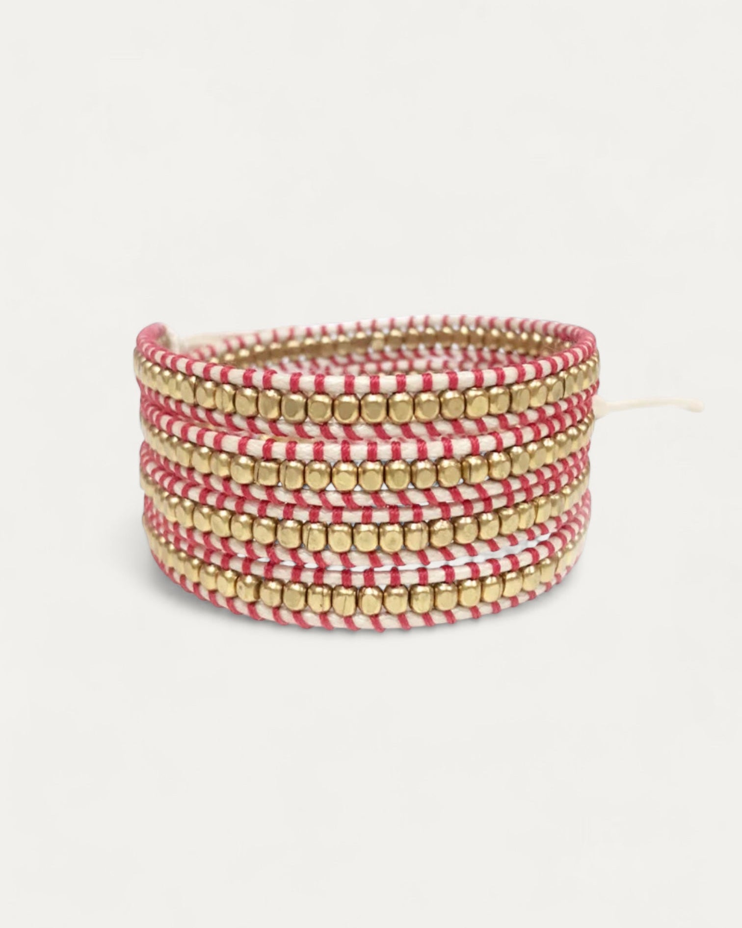 4x Wrap Bracelet, is handcrafted with a combination of cotton and plated metal.