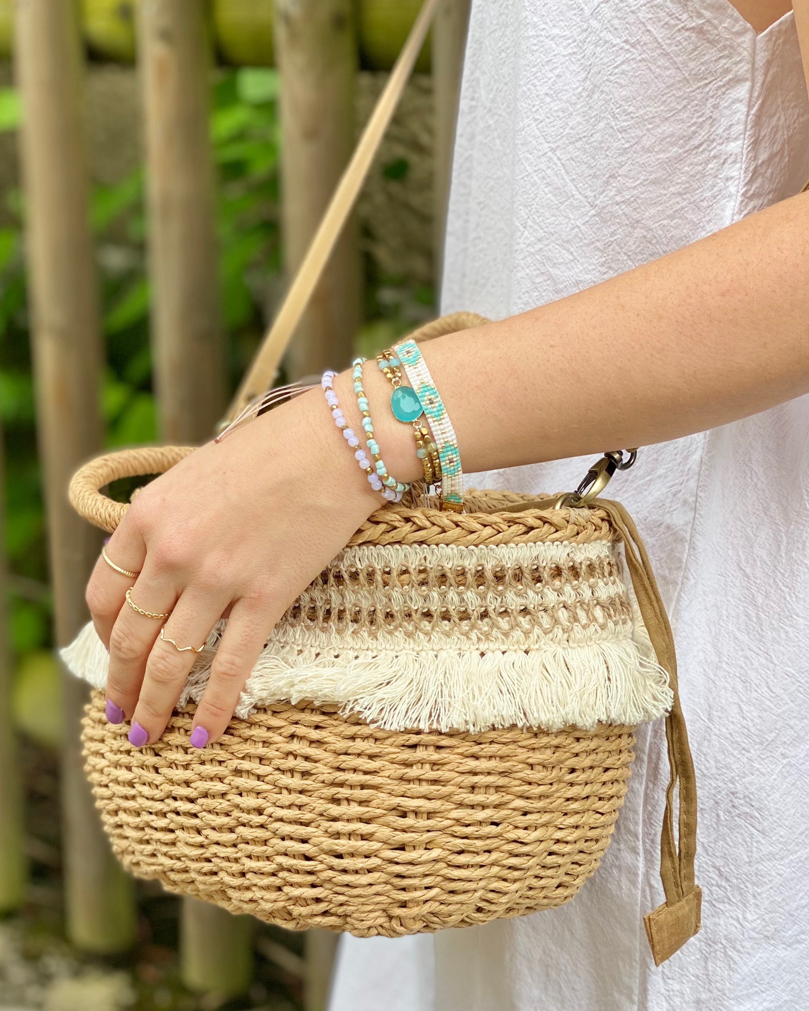 This bag is trendy and perfect for wearing on the beach or with a casual look.