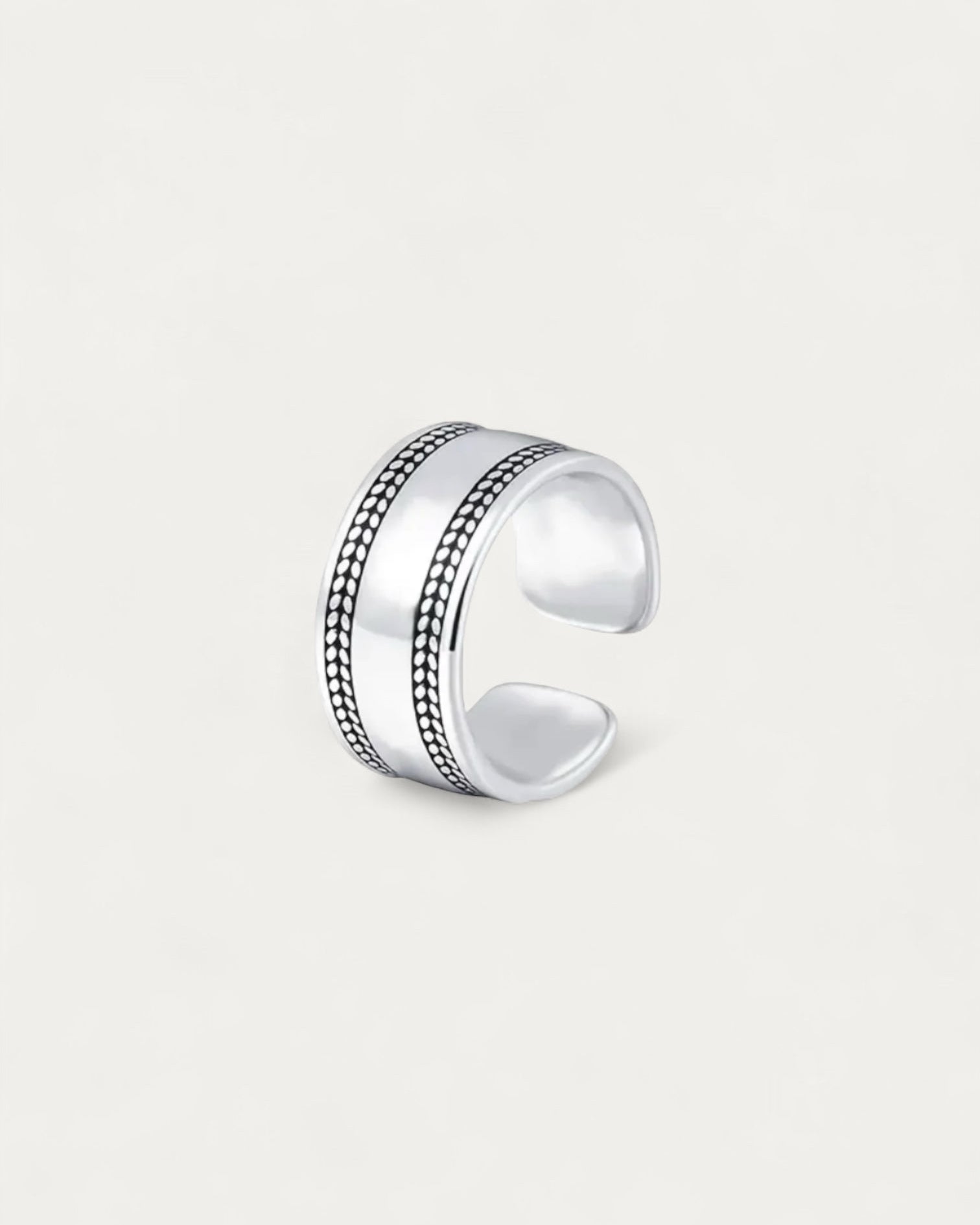 This ring is made of 925 sterling silver and features a vintage design. It is perfect for everyday wear or for combining with other rings, giving it a modern and sophisticated contrast. Its design makes it a versatile piece, perfect for everyday wear or combining with other rings for a bolder look.