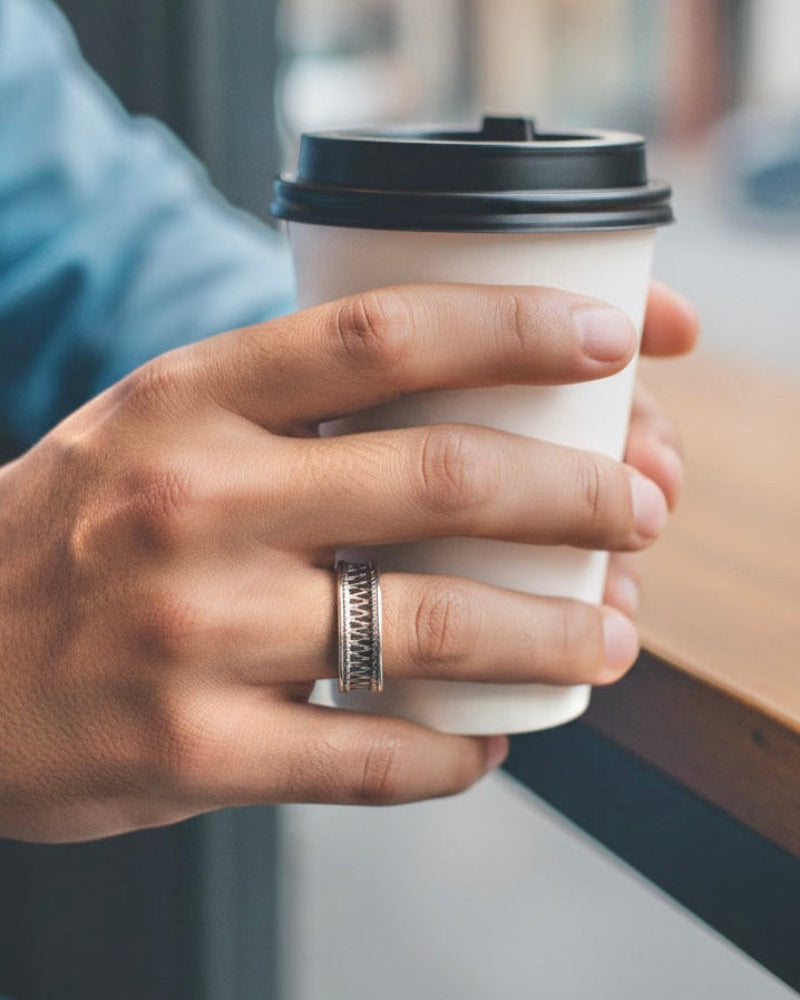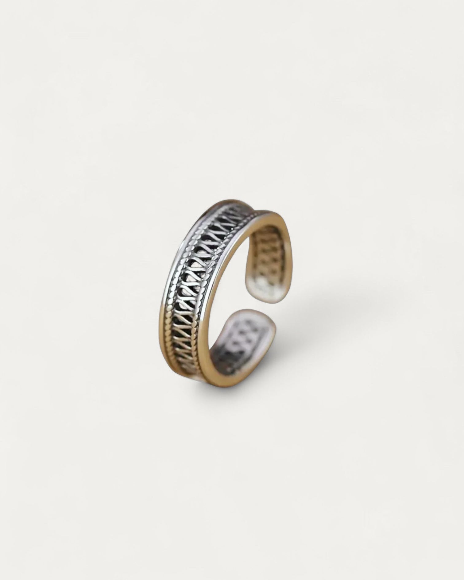 This ring is made of 925 sterling silver and features a vintage design. It is perfect for everyday wear or for combining with other rings, giving it a modern and sophisticated contrast. Its design makes it a versatile piece, perfect for everyday wear or combining with other rings for a bolder look.