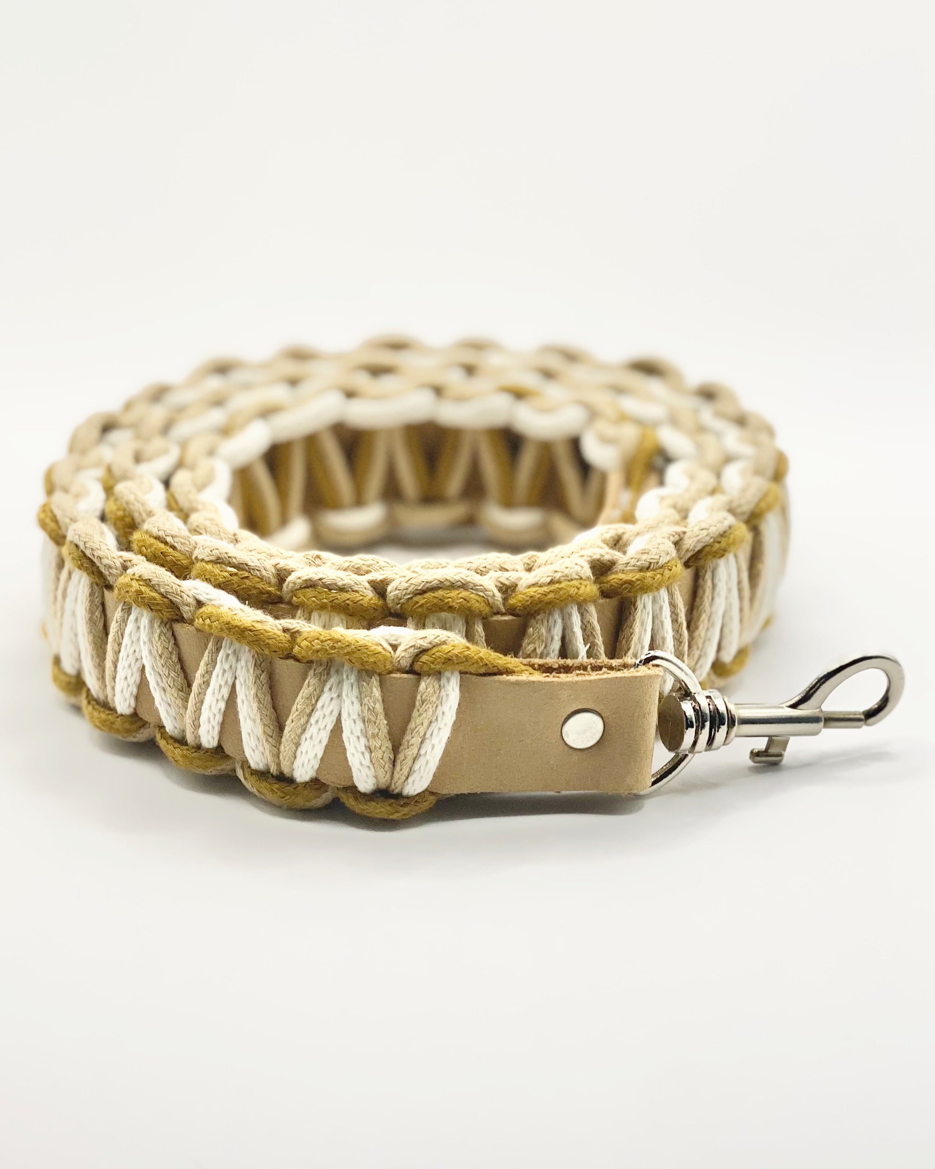 Materials: Cotton rope and leather strap.
